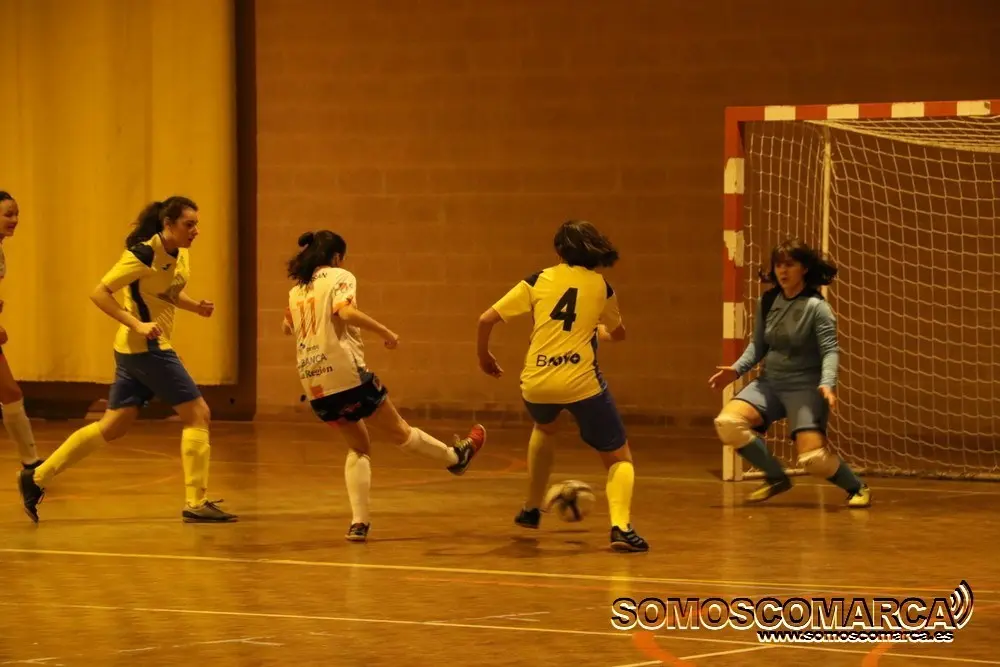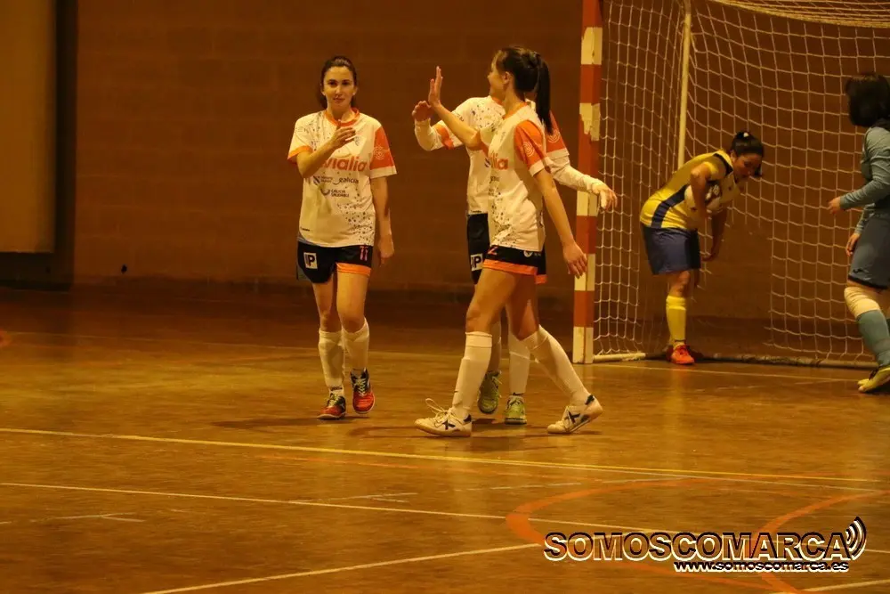 La primera mitad terminó con 2 a 5. Tras adelantarse las pontinas con el gol de Blanca, Carol hizo la igualada, pero los tantos de Nerea, Ana Belén y Blanca en 2 ocasiones más hacían que el partido pareciera resuelto justo antes del descanso. Carol tras el 1 a 5 dejó el luminoso de O Aguillón con 2-5 para irse ambas escuadras al vestuario.