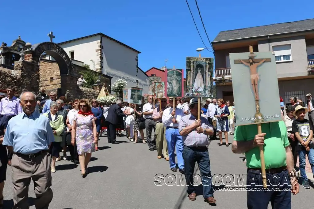 Outra particularidade da procesión da Ascensión é que todos os pobos do municipio participan nela portando un cartaz onde se vei o nome do patrón de casa unha das poboación e o nome delas.