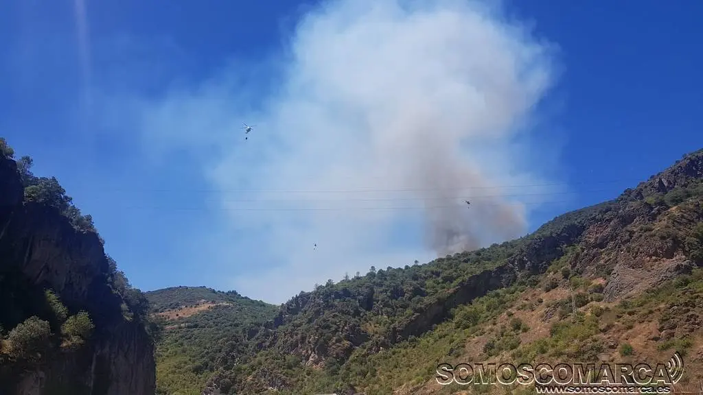 En la extinción del incendio está participando un agente, cuatro brigadas, dos motobombas, tres helicópteros —que recogen el agua del Embalse de Peñarrubia— y 2 aviones que supervisan la zona.