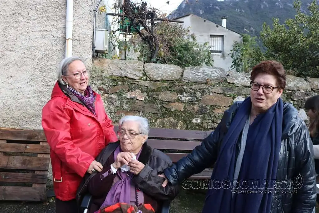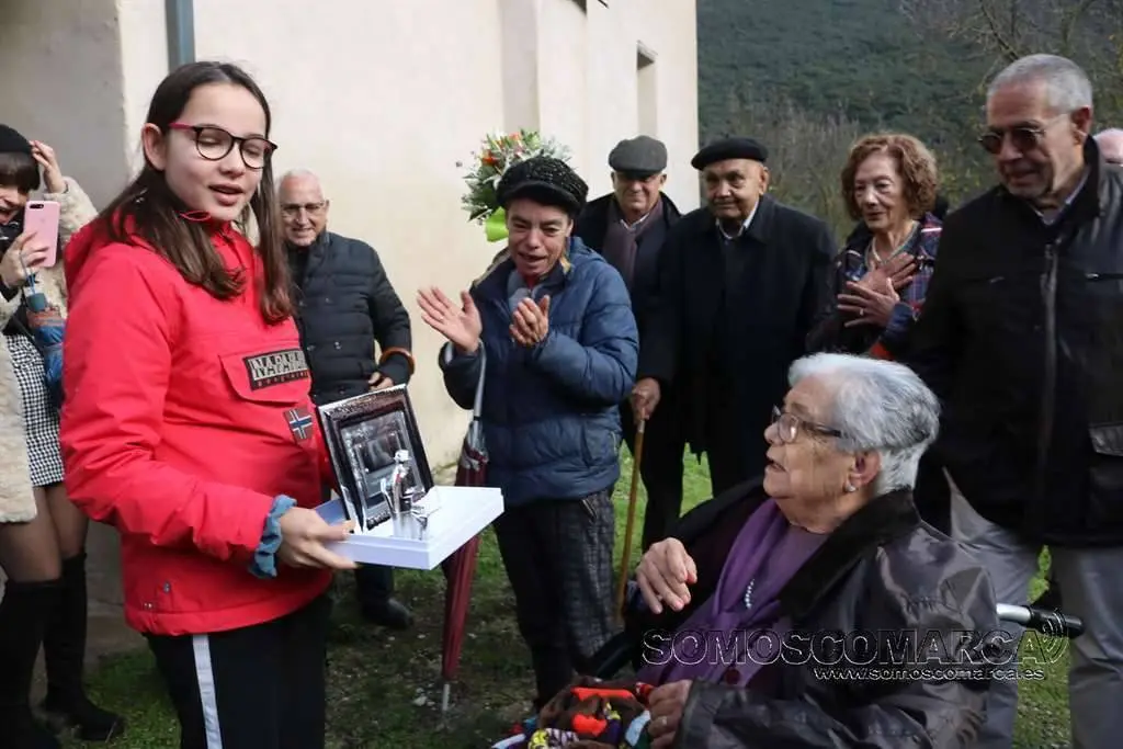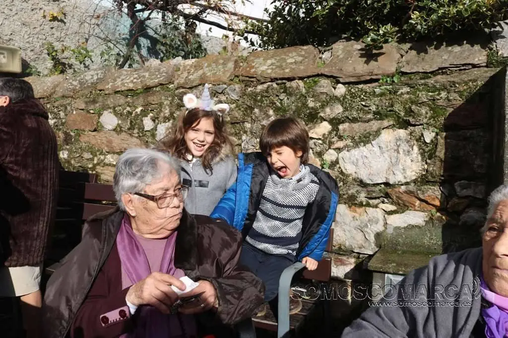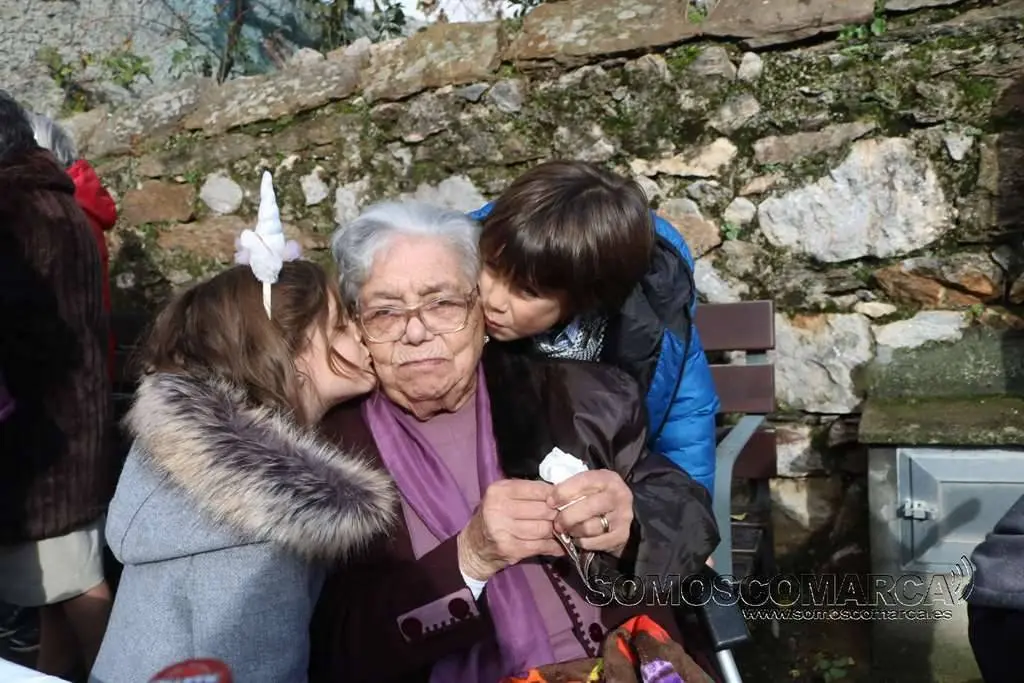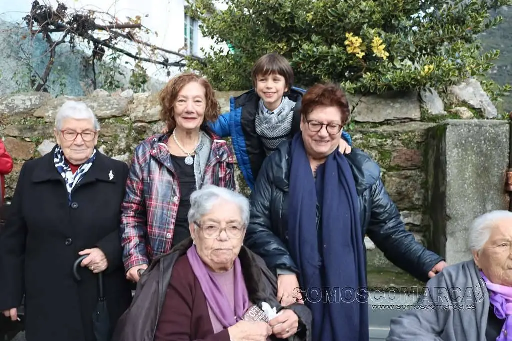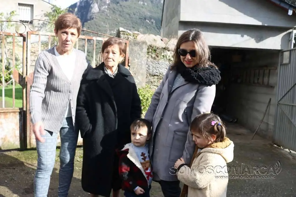 En los últimos años su falta de movilidad, —tiene que trasladarse en silla de ruedas— le impide viajar a Covas con la frecuencia que desearía. Hoy lo ha hecho a lo grande, rodeada de sus dos hijas, su dos nietos Celia y Victor y de dos de sus tres biznietos, Yago yElena. María no estuvo presente ya que tiene tan sólo cuatro meses y vive lejos, aclaró Celia, su madre.