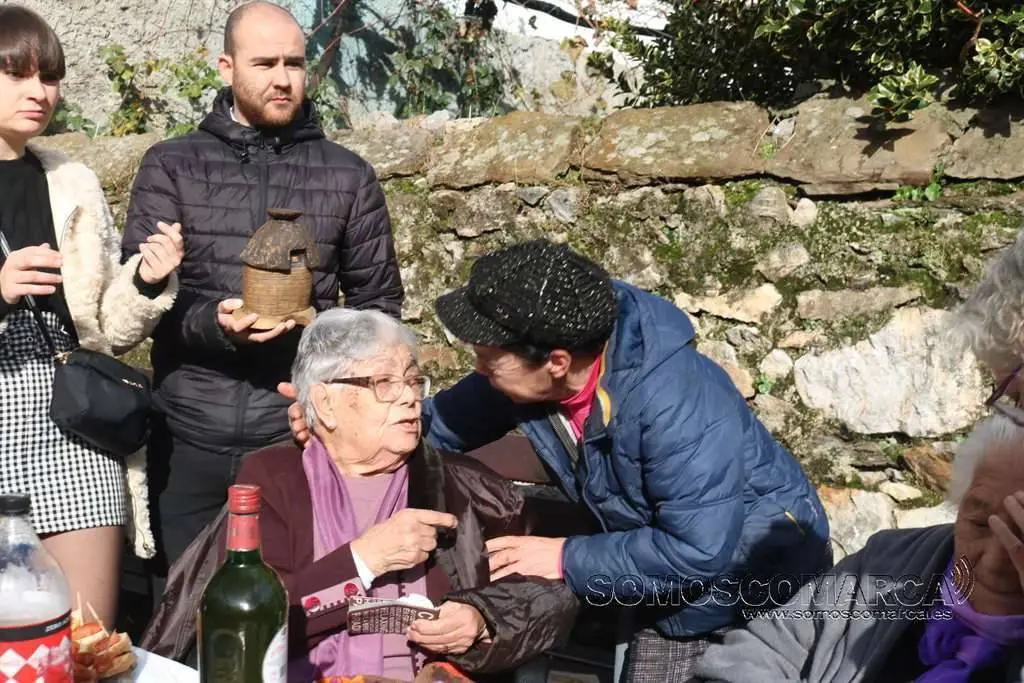 Vive en Monforte desde hace más de 60 años, pero no ha dejado de volver al pueblo durante todo este tiempo. La matanza, la recogida de las castañas, la fiestas patronales a la Virgen del Rosario, de la cual es muy devota, son la escusa perfecta para volver a su «amada» Covas. «Nunca se olvidó de su pueblo querido», nos dice Carmen, una vecina que junto al nieto de Laura, Victor, organizaron este homenaje.