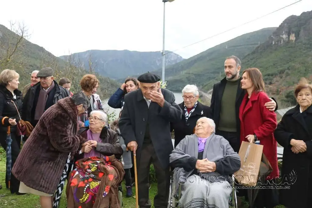El pueblo de Covas en el Concello de Rubiá rindió homenaje a su vecina centenaria, Laura Álvarez. Una misa a las doce de la mañana a la que asistió acompañada de su familia, vecinos y amigos, daba el pistoletazo de salida a esta entrañable celebración. Luego de hacerle entrega, en la puerta de la iglesia, de una preciosa placa conmemorativa y un ramo de flores, todos se dirigieron a la plaza del pueblo, no sin antes posar para la foto de familia. A escasos metros de la casa que la vio nacer un ágape para los asistentes hecho por los vecinos.