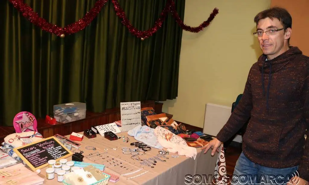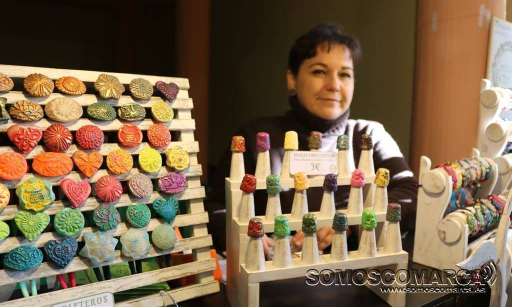 Artesán do estano, Maria Victoria, xa estivo o pasado ano no Mercadiño e no presente trae novidades como broches ou dedais feitos con pasta polimérica. O estano repuxado e sen dúbida a súa especialidade na que fai pendentes, pulseras ou aneis