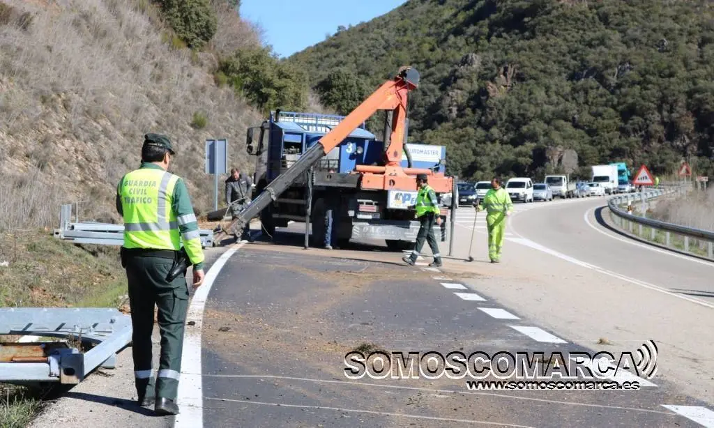 El camión perdía la carga de estructuras metálicas lo que ha llevado a los agentes de la Guardia Civil a cortar el tráfico en ambos sentidos. El tráfico fue regulado por los efectivos, quienes agradecieron la labor de un camión grúa que se hallaba en el atasco y que, voluntariamente, colaboró en la retirada de las estructuras metálicas de grandes dimensiones, por lo que se pudo reestablecer en un breve periodo de tiempo.