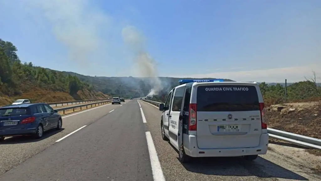 La Guardia Civil de Trafico está canalizando el flujo circulatorio para facilitar las labores de extinción
