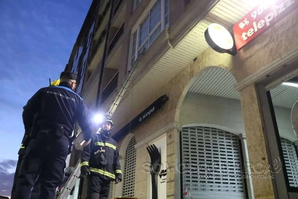 La intervención de la Policía Local de O Barco y dos miembros de Grupo de Emergencias Supramunicipal de Valdeorras, ante el posible desplome de una cornisa en la finca número 16 de Parque do Malecón, causa gran expectación entre los transeúntes que en esos momentos paseaban por el conocido paseo de O Barco.