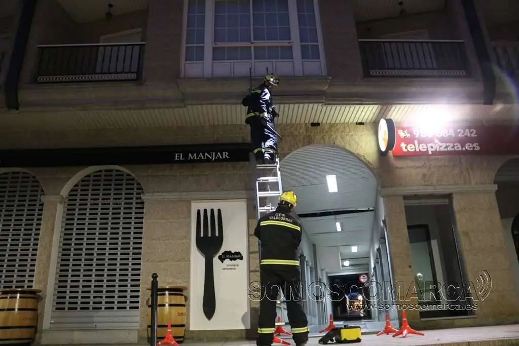 La entrada a las galerías Paylo de O Barco quedó parcialmente acordonada por seguridad