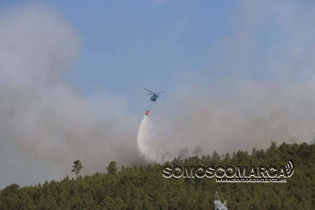 Intervinieron en la extinción del fuego declarado en la parroquia de Santo Estevo de A Rua: 1 técnico, 5 agentes, 11 brigadas, 4 motobombas, 1 pala y 5 helicópteros.