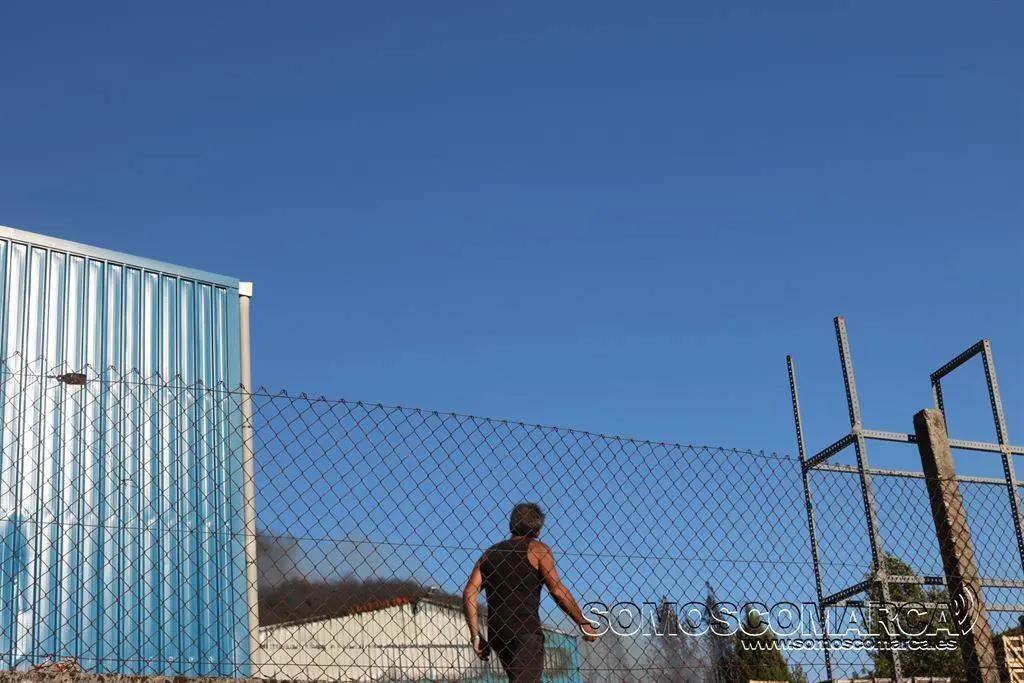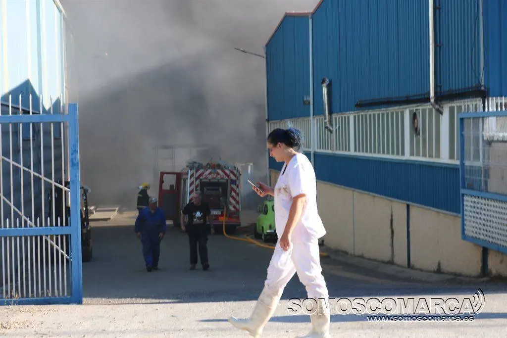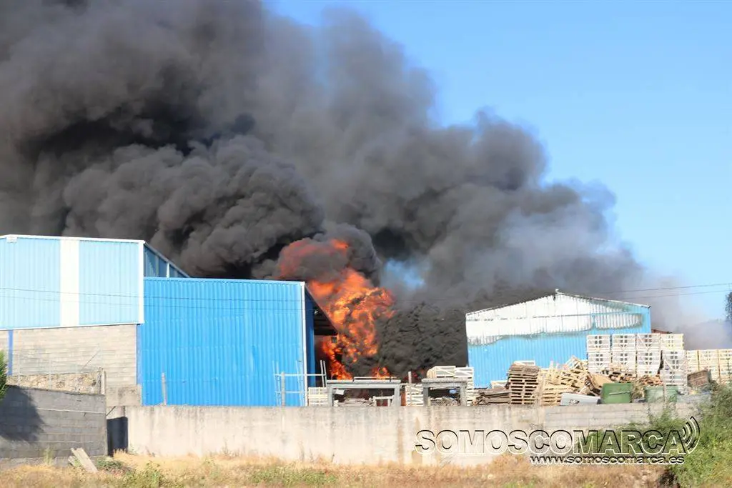 Los bomberos en un primer momento dirigieron su trabajo a que el fuego no se propagase a las dos naves que se encuentran dentro del recinto.