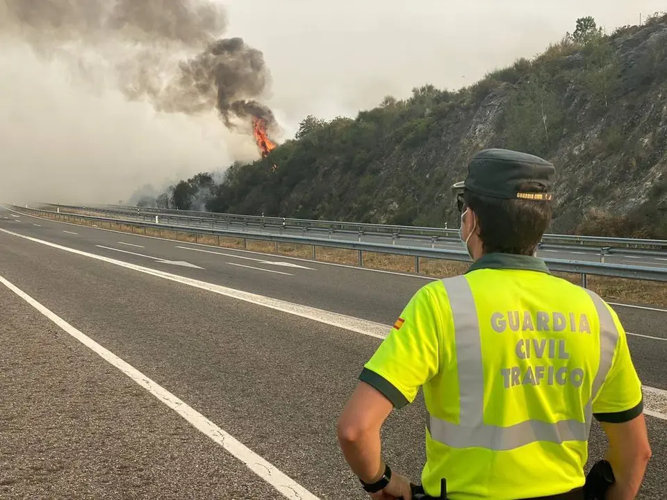 En la tarde de este lunes, 14 de marzo, la proximidad de las llamas del incendio de Cualedro a la A-52 obligaron a cortar la calzada en sentido Benavente, desviando la circulación por la salida 173 hacia la N-525.