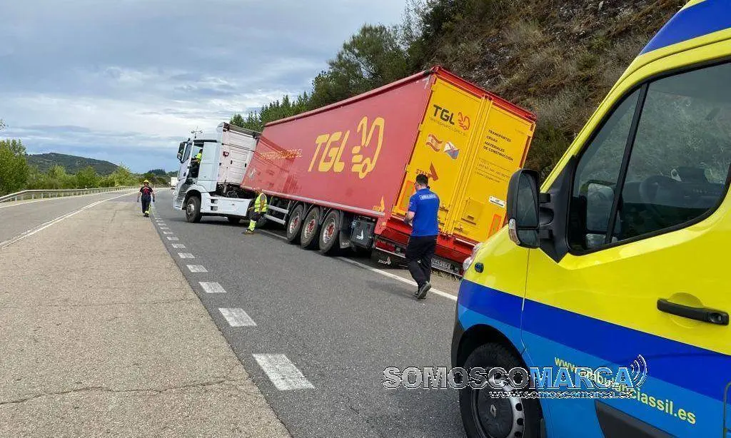 En el suceso no hubo que lamentar daños personales, mientras que los materiales fueron mínimos, ya que el camión no llegó a perder la carga que transportaba.