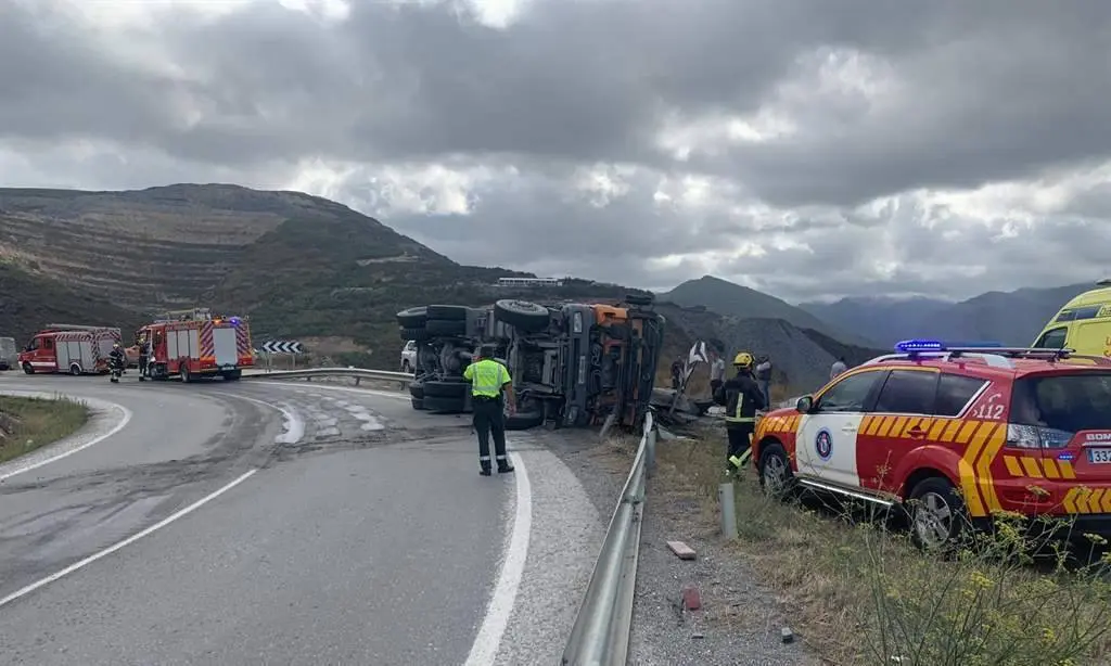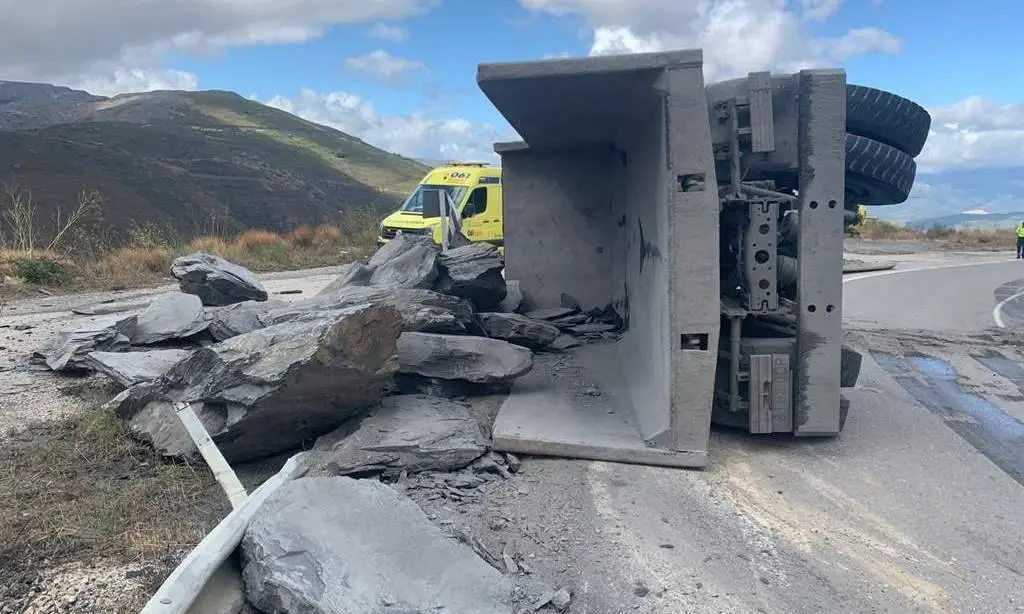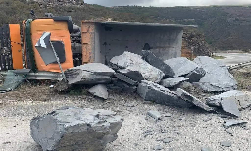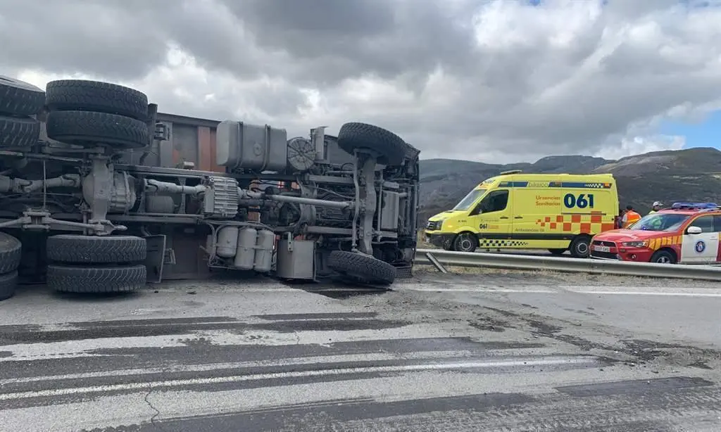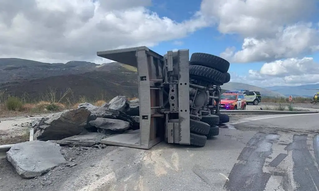 Una persona resultó herida al volcar el camión que conducía en la OU-122 en la carretera de Casaio. El suceso se produjo a las 12:50 de este martes, 1 de octubre, cuando el vehículo circulaba cargado con «rachón» y volcó al salirse en una curva.