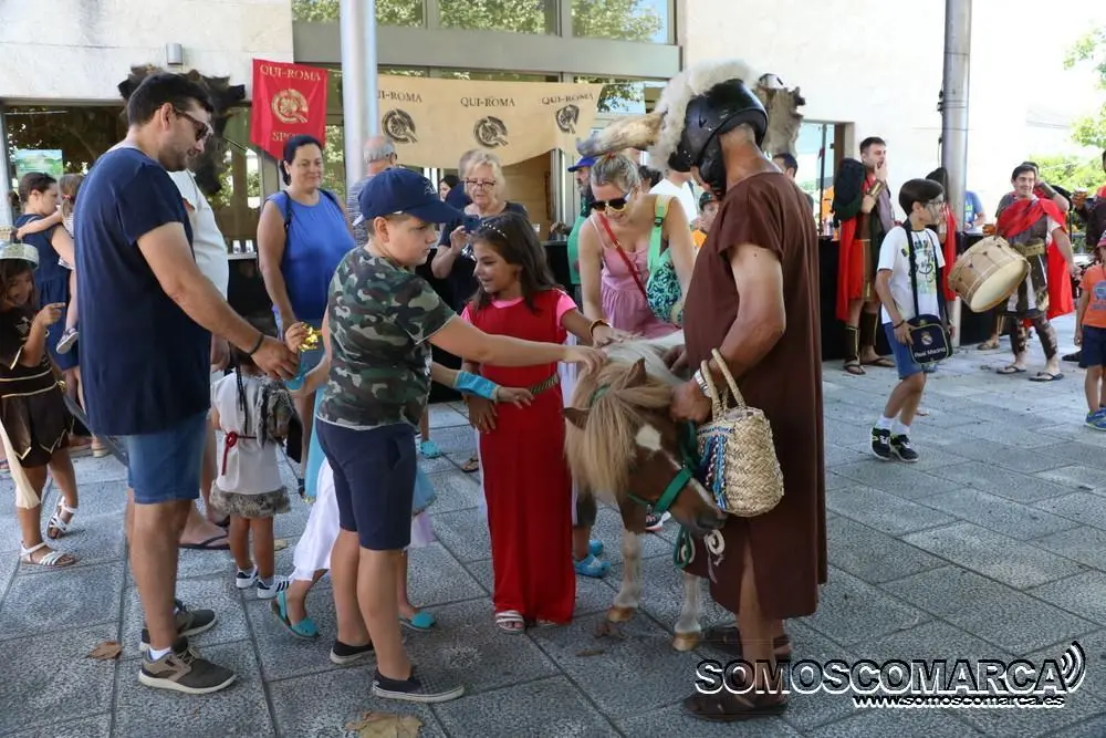 De tarde de nuevo se desarrolló un extenso programa que incluían talleres de maquillaje, papiroflexia, manualidades..., escuela de pequeños gladiadores para los futuros luchadores, actuaciones de gaiteiros y hasta un bingo Qui-Romano.