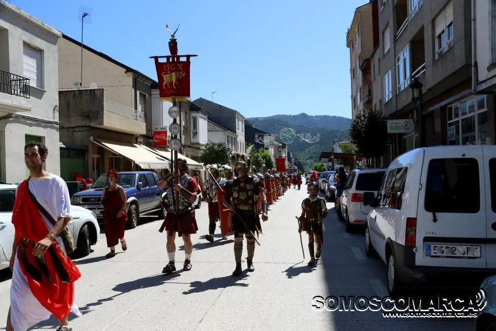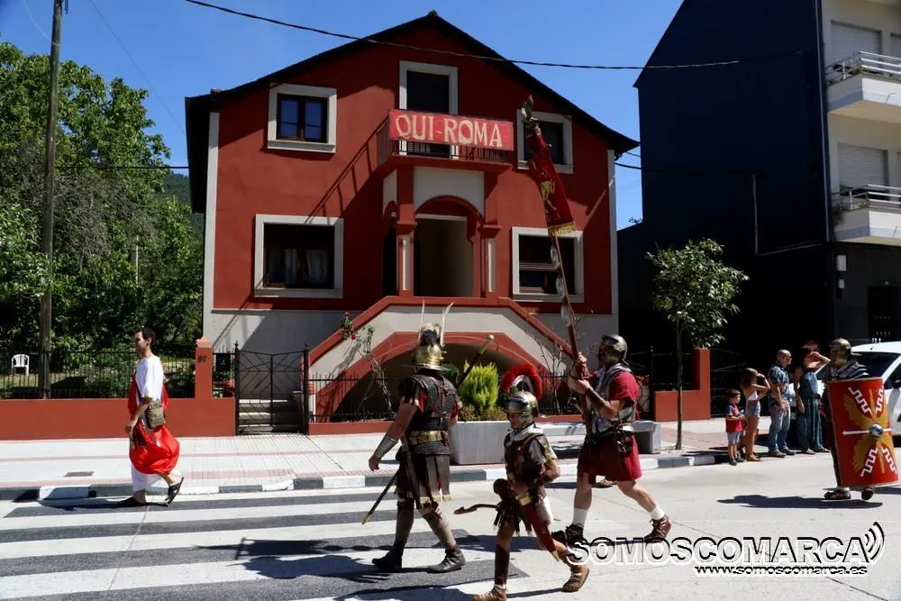 En breves instantes comienza el plato fuerte de la jornada con el desfile Qui-Romano "Arde Loucos" por la Vía Rex (Calle Real) de la villa con la participación de los gaiteiros "Brabán" y "Os Palletas", la Guardia Romana Lucus Equites, Mario Nogueira y sus bueyes y todos los que deseen participar.