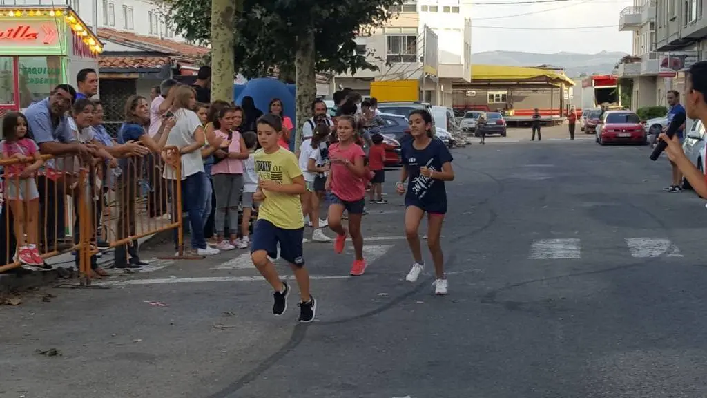 50 niños nacidos entre el 2006 y el 2015 se dieron cita en la Praza de Abastos de Trives, para, en función de la edad recorrer diferentes distancias en un circuito que llevó a los más pequeños por las diferentes calles de la villa.