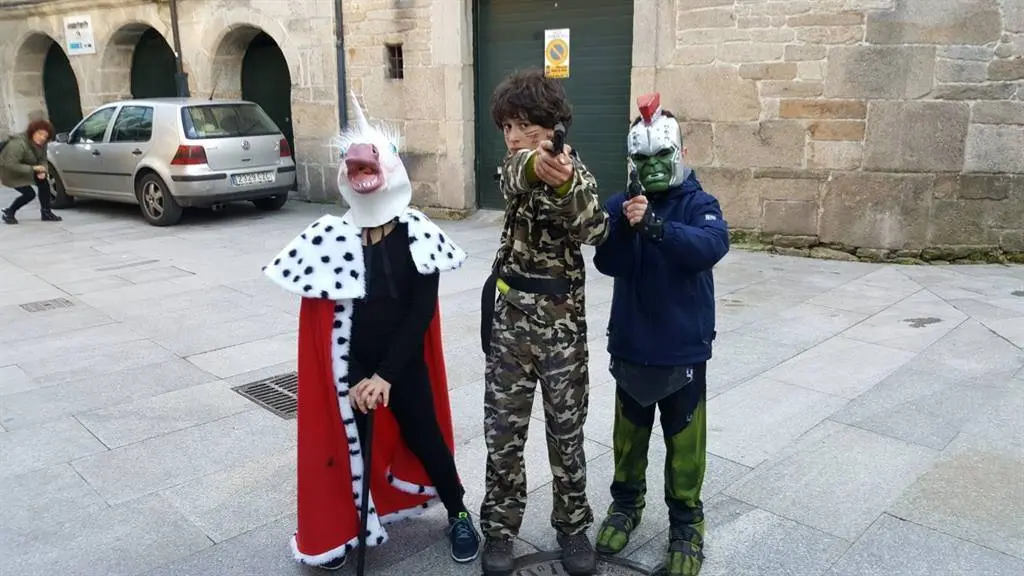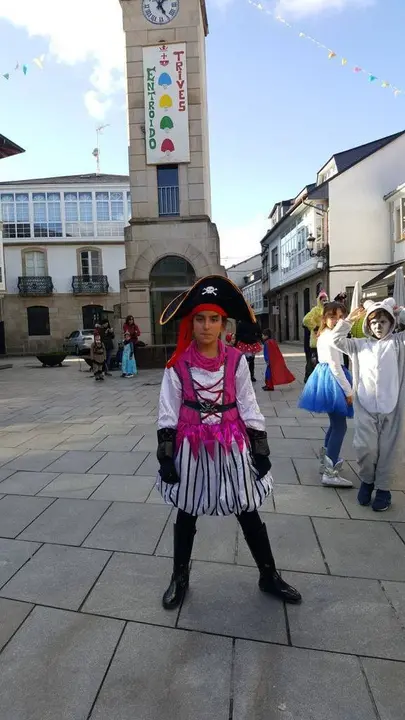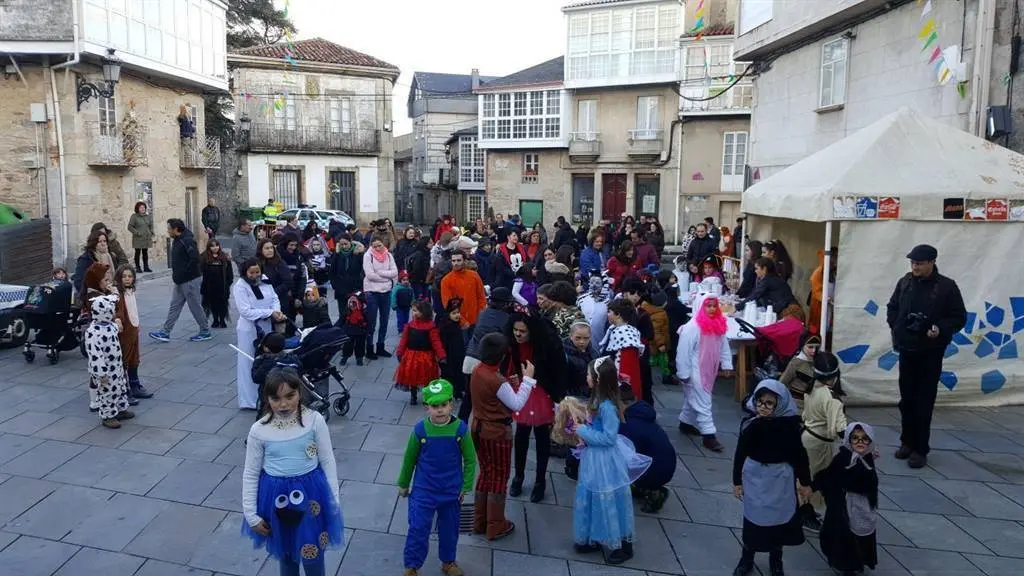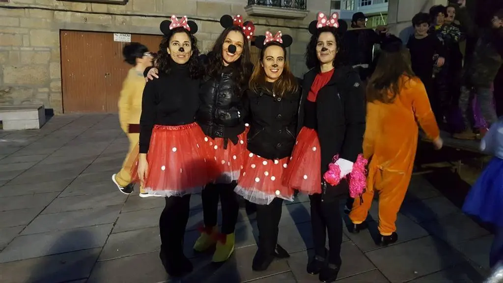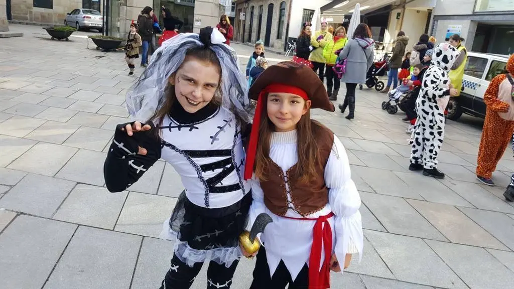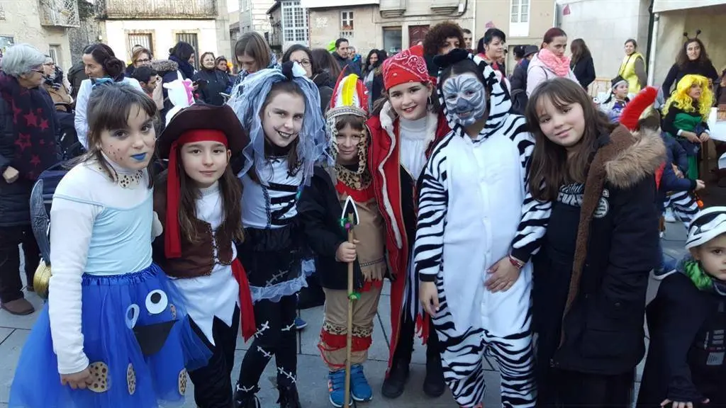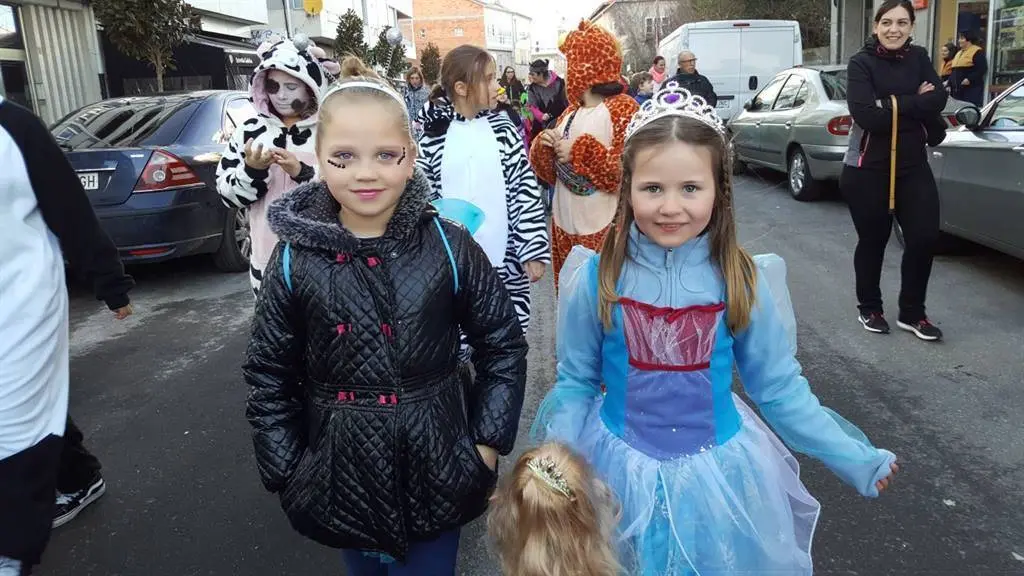 Tarde fría, na que o tempo respectou e na que o que a troula e diversión impuxéronse. Bruxas, Súper heroes, princesas, Mario Bros, Luke SkyWalker, Mickey Mousse, Minnie, Triqui o monstro das galletas, corsarios, piratas, elfos, unicornios, velliñas, bruxas, crocodilos, presidiarios, indios, vaqueiros, todos pasearon pola vila mostrando os seus disfraces á xente que agardaba nas beirarrúa.