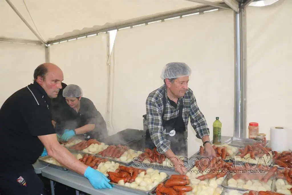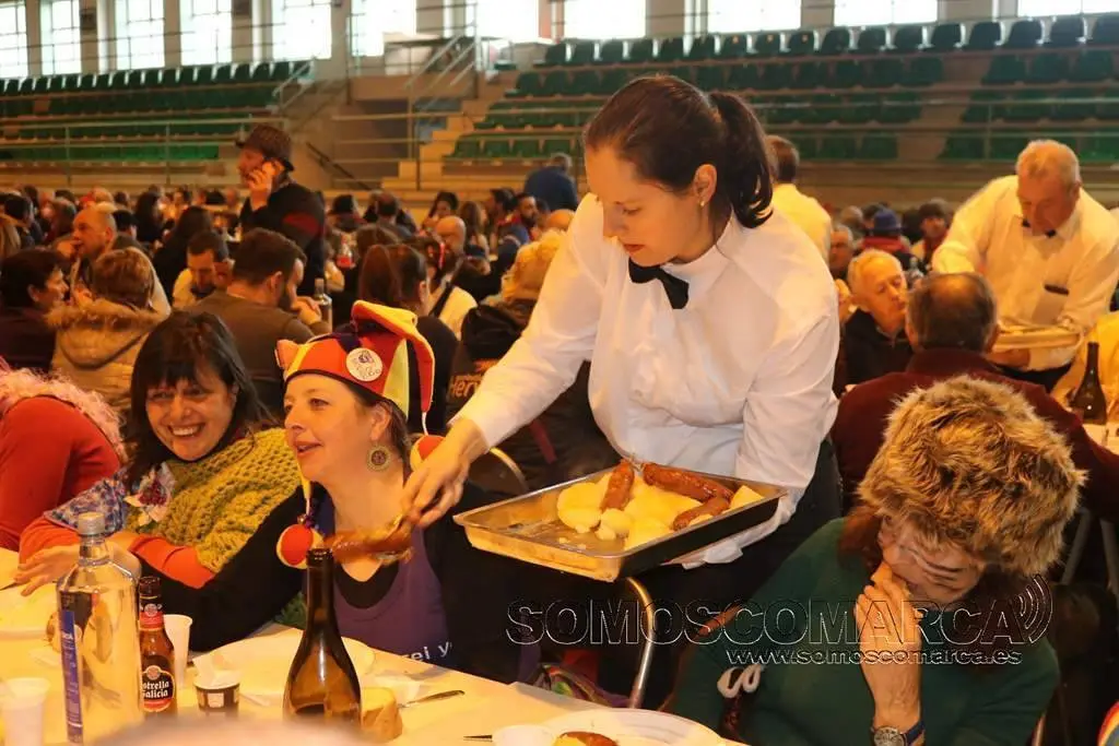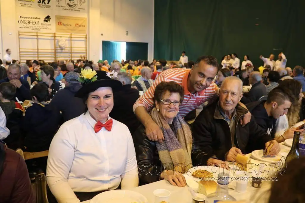 Una vez rematado o percorrido foi o momento do xantar popular no que se deron cita1065 comensais. No menú, chorizo cocido, empanada, carne ó caldeiro, bica y viño. «Había máis xente interesada, pero o pavillón ten o aforo que ten», dixo o alcalde o respecto.