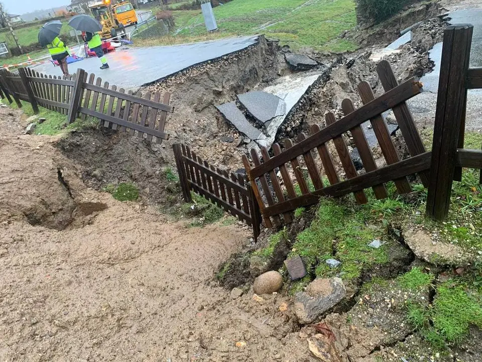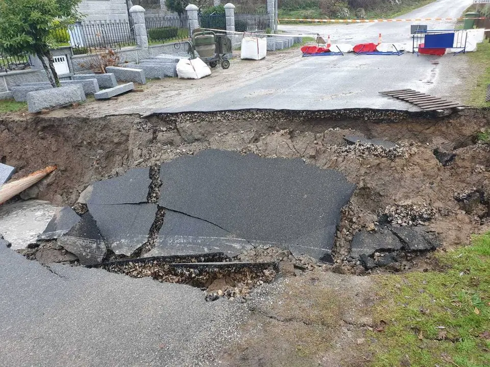El suceso se produjo el pasado 19 de diciembre en el puente de la OU-0701. Esta carretera une el municipio con Vilariño de Conso. «Ya en meses anteriores habían venido los técnicos de la Diputación a verlo porque daba muestras de que no estaba bien. Salía el agua a la carretera y tenía baches», explicaba el alcalde, Amable Fernández.