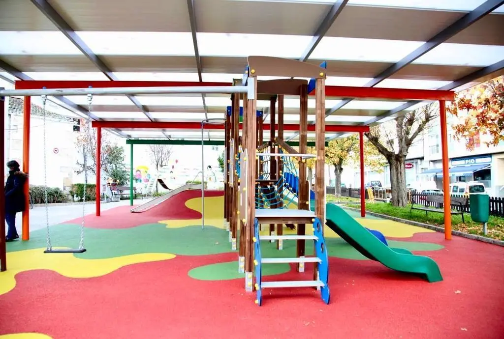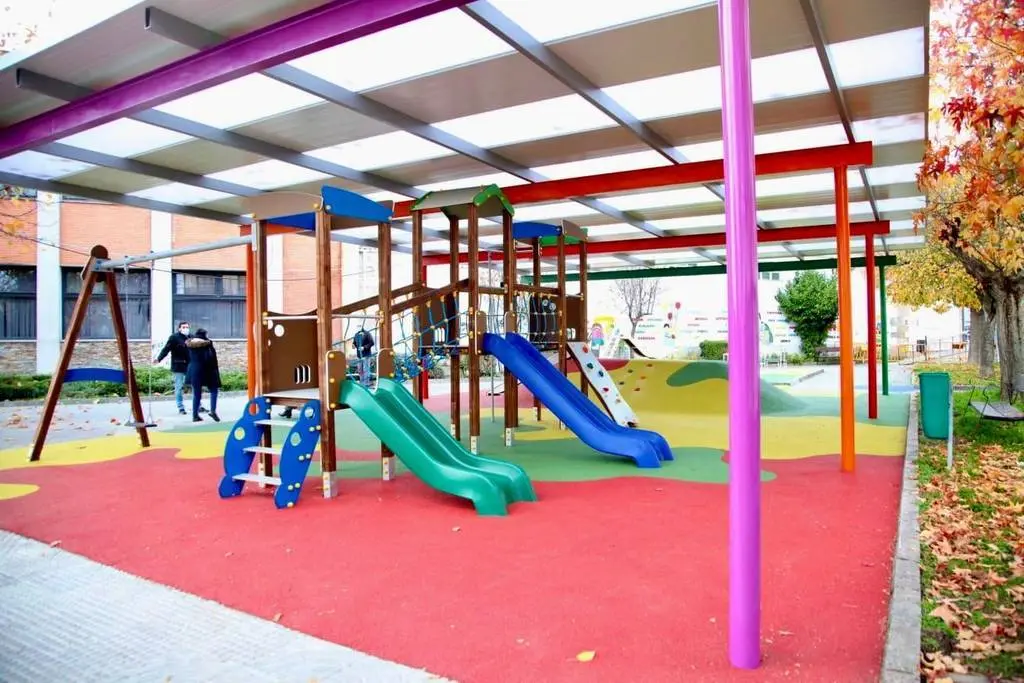 Además, se ha cubierto la zona, lo que permite el disfrute de los niños y niñas también en las épocas invernales. El parque cuenta con un rocódromo para el favorecimiento de la actividad psicomotriz, finalizando el juego con un tobogán. También tiene con un gran elemento central que integra columpios, zona de escalada, toboganes y demás juegos inclusivos y adaptados a la normativa, pensados todos ellos para conjugar deporte, diversión y aprendizaje.