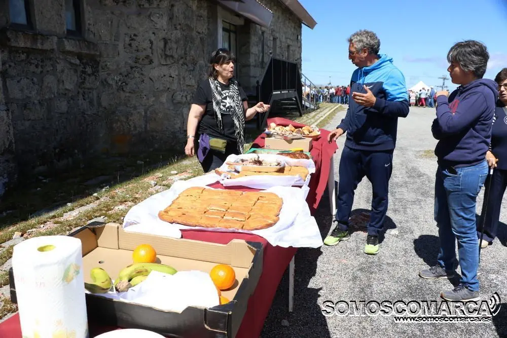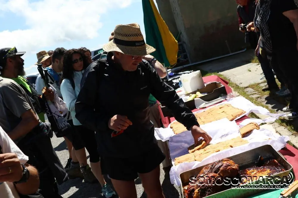 Tras a subida a veira do edificio da cafetería de Cabeza Grande os andaríns disfrutaron dunha comida onde había empanada, lacón e tamén froita para recuperar as forzas, todo elo coa música do Certáme Celtibérico de Gaitas de fondo.