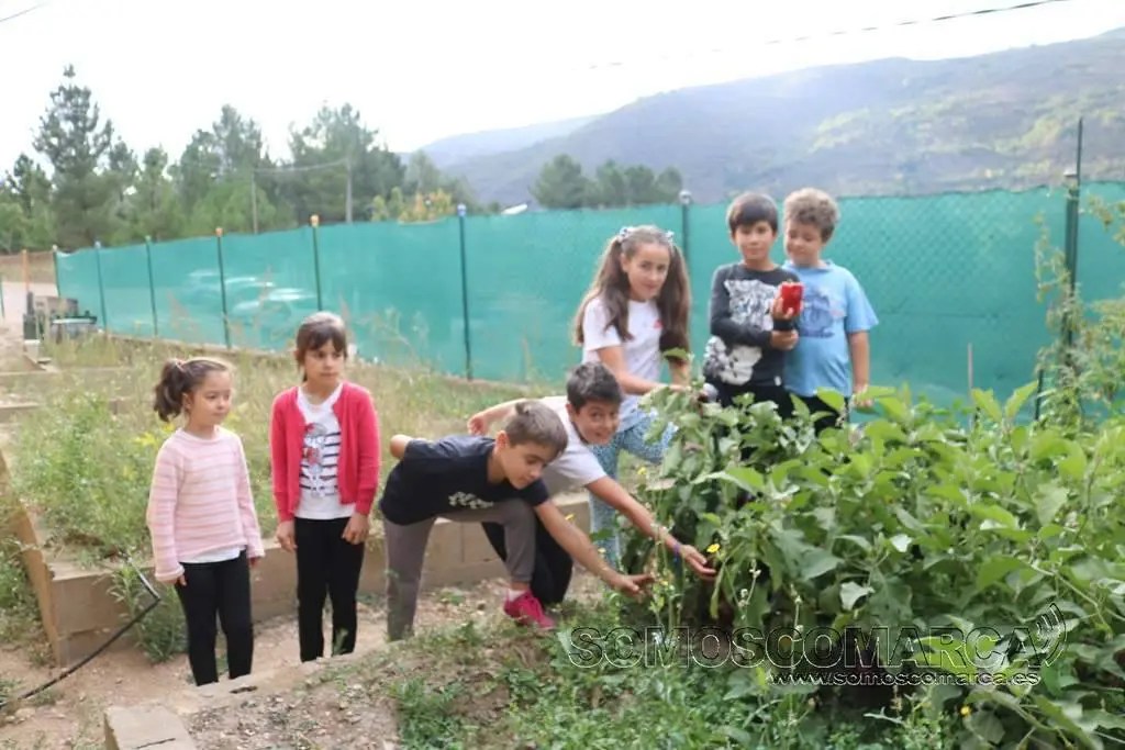 El huerto es una parte importante de este colegio. Cultivan tomates, berenjenas y pimientos que luego recolectan y comen en el comedor del centro educativo.