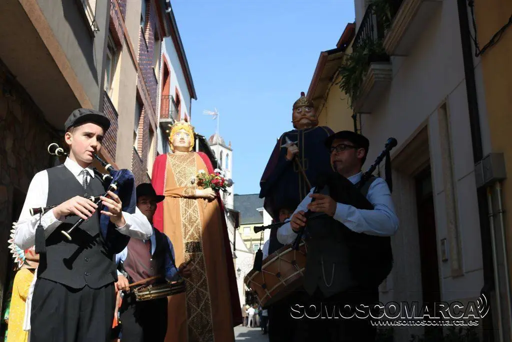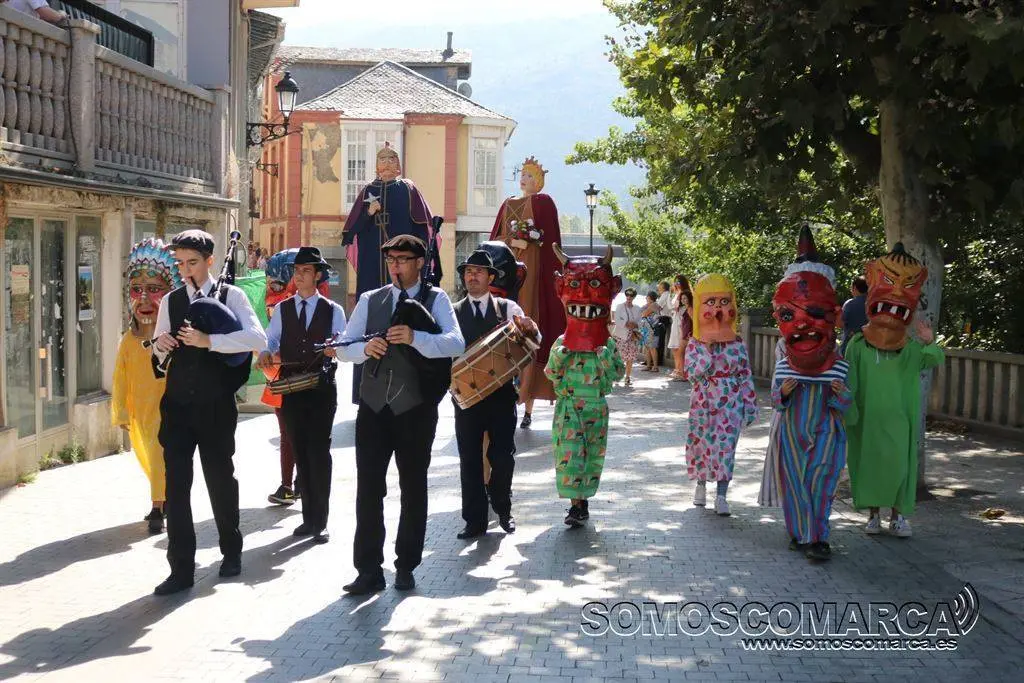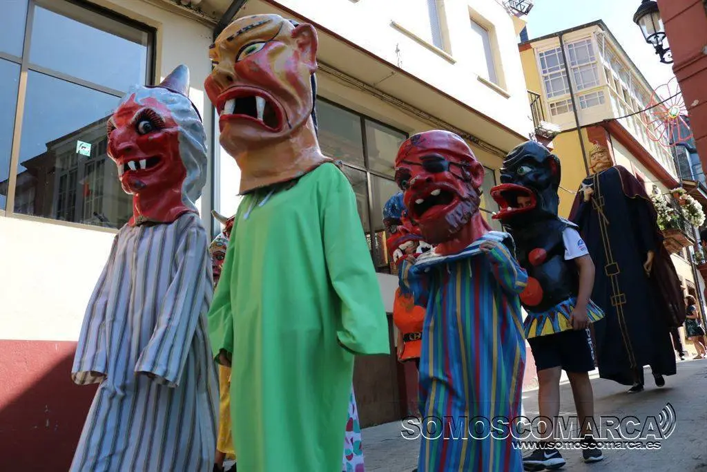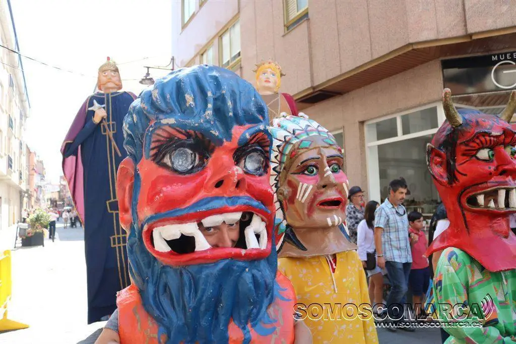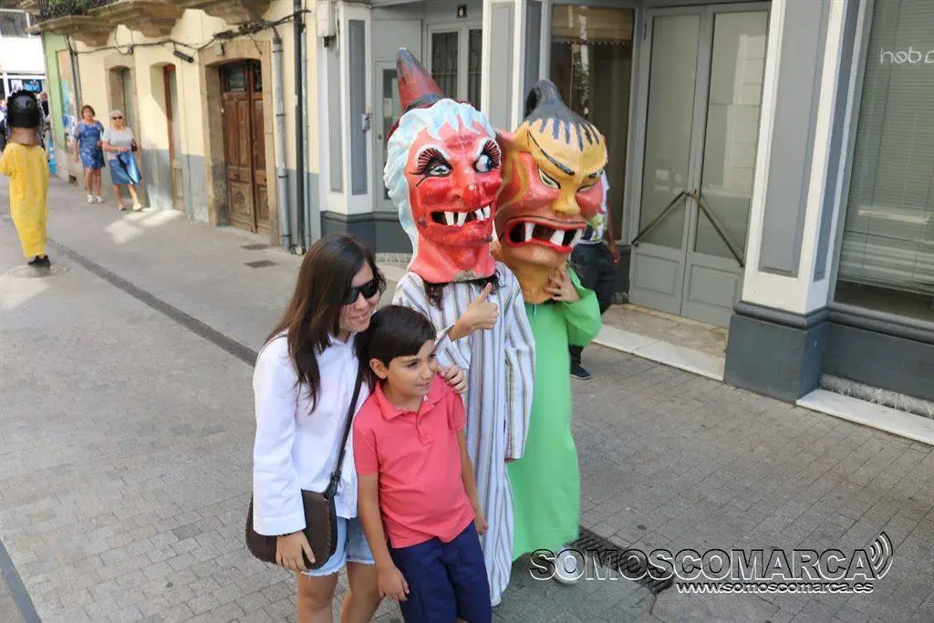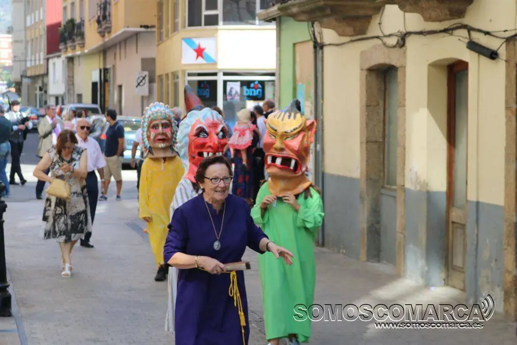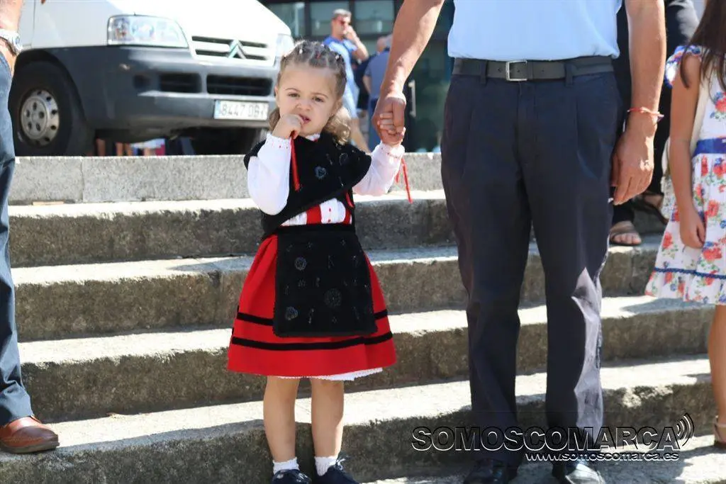 Tras sacar la talla del siglo XVII a la puerta de la iglesia por los cofrades — más de 50 familias—, ante la atenta mirada de su presidente, Ángel Fernández, se inició la procesión encabezada por cabezudos y las calantornias.