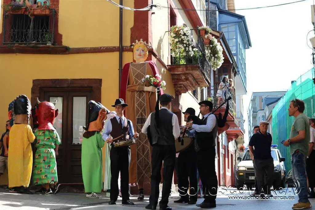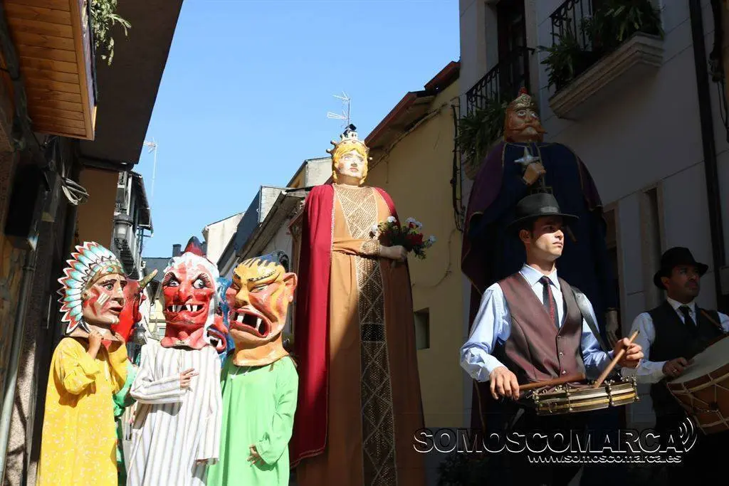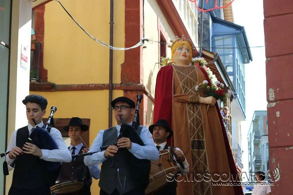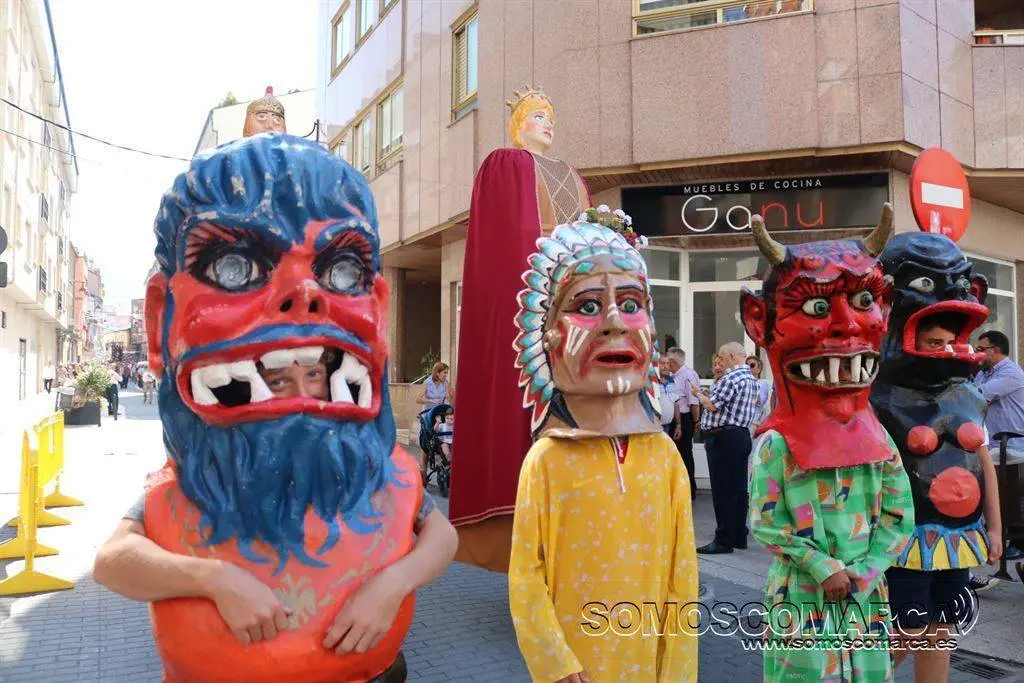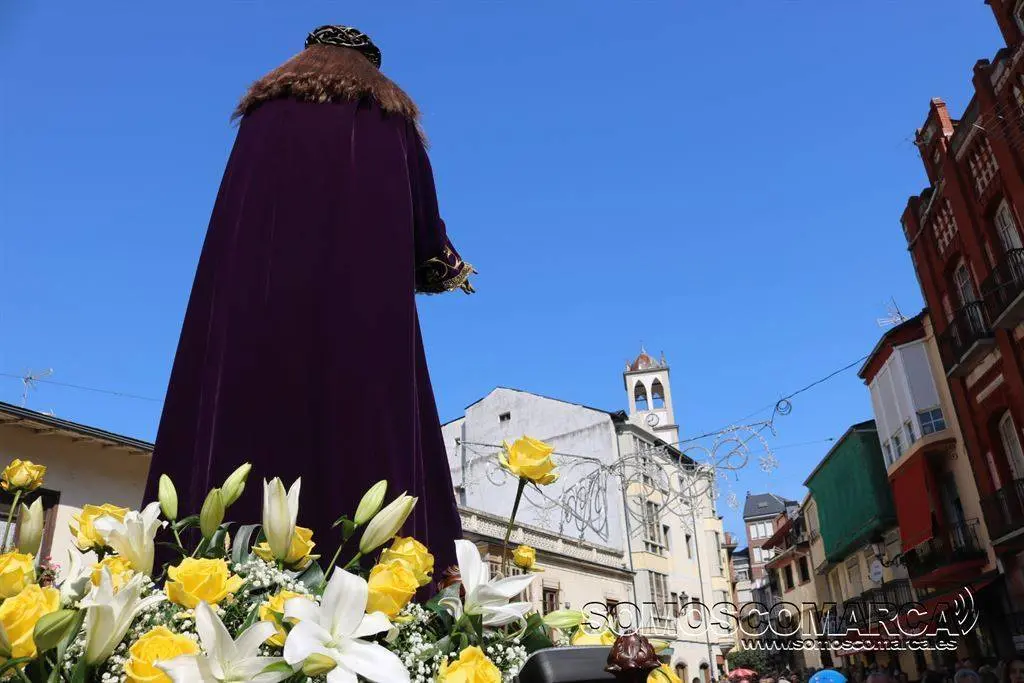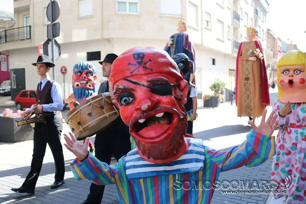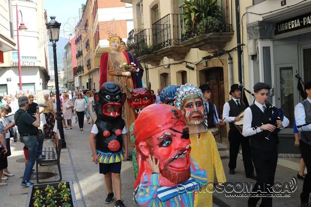 Tras sacar la talla del siglo XVII a la puerta de la iglesia por los cofrades — más de 50 familias—, ante la atenta mirada de su presidente, Ángel Fernández, se inició la procesión encabezada por cabezudos y las calantornias.