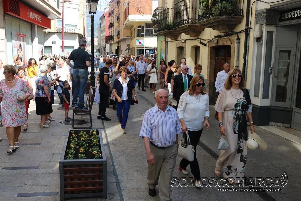 Tras abandonar la plaza de la iglesia, la procesión bajó por la calle San Mauro al corazón del Casco Vello barquense, para llegar a la Pérez Lista pasando antes por la rúa Real. La calle Marcelino y luego Eloy Mira fueron el recorrido de regreso a la plaza Mayor donde se ofició una misa de campaña.