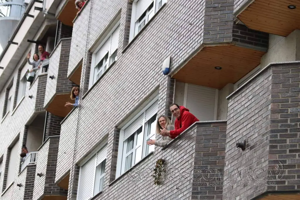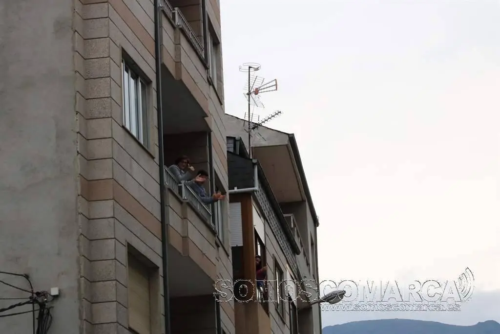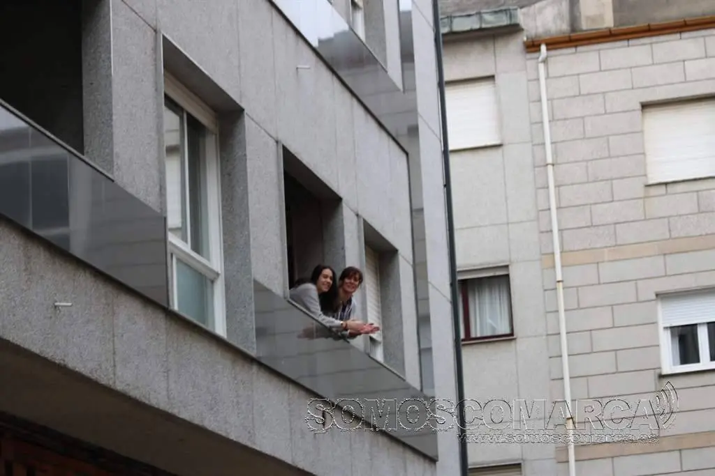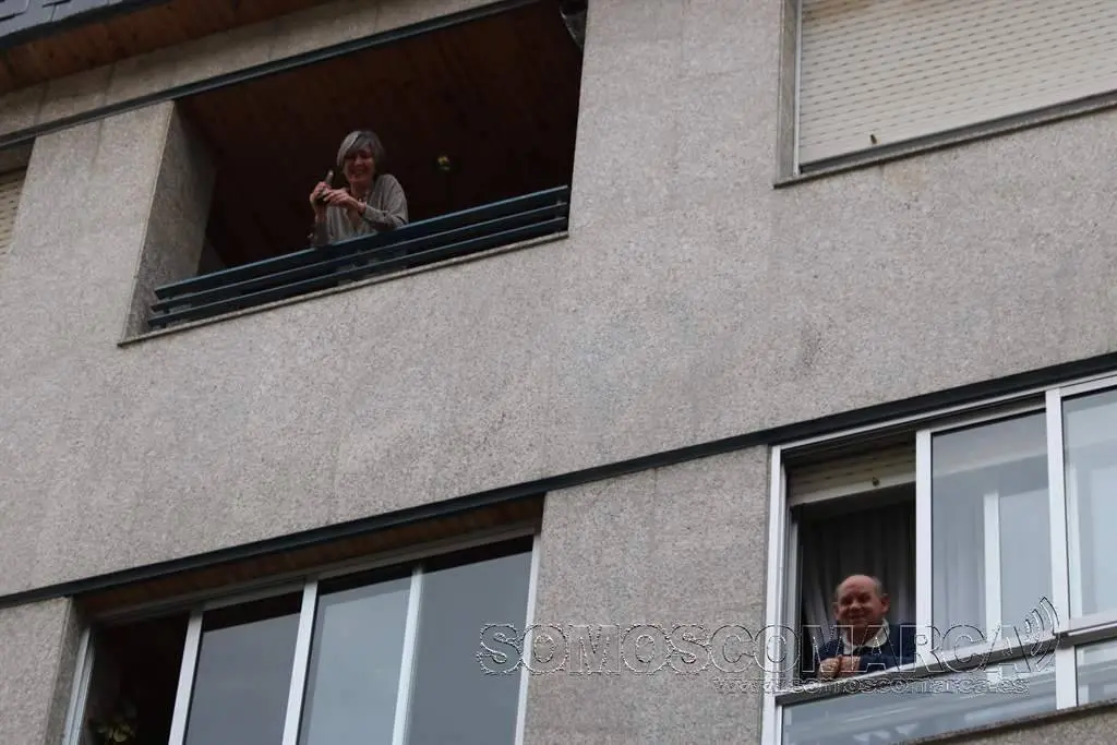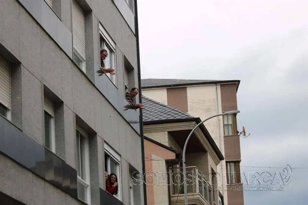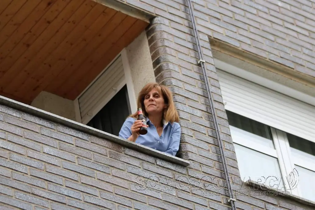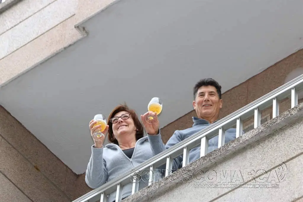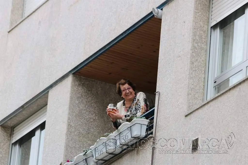 Desde allí ponemos rumbo a la calle Padre Feijóo —la que sube hasta Fontei— porque una de sus vecinas nos sopló que después de los aplausos de las ocho se quedan un ratito de «cerves» en los balcones y terrazas. Y así fue, Teresa, Pili, Isabel, Maribel, Carlos, Arturo y un «montonazo» de vecinos, tras los aplausos se metieron en sus casas para salir con una cervecita o un refresco en las manos, hoy el brindis fue por Somos Comarca ¡Gracias!