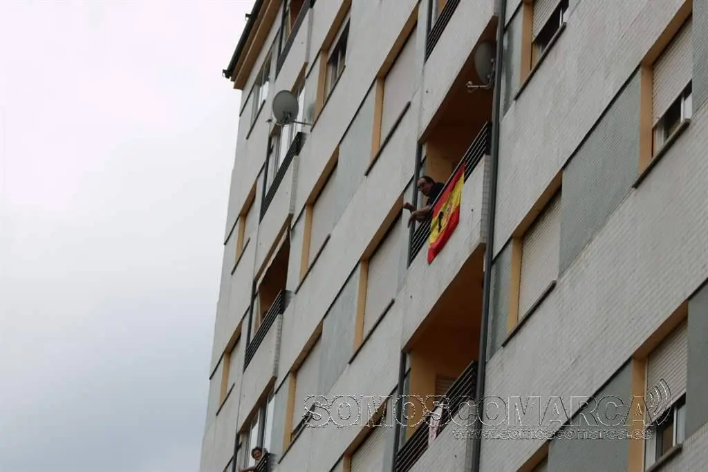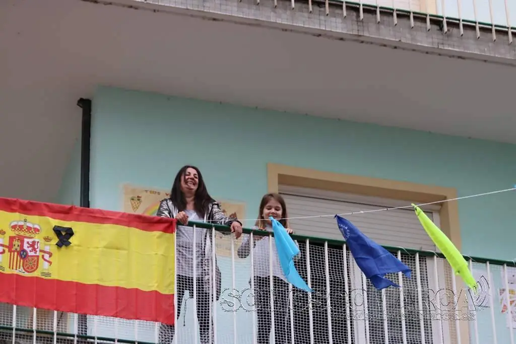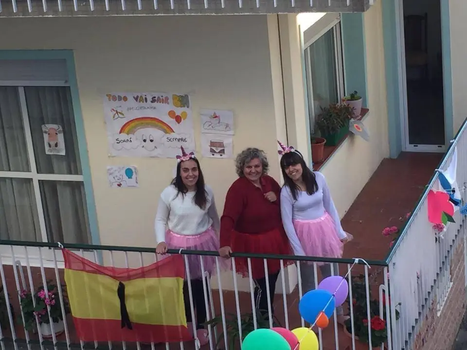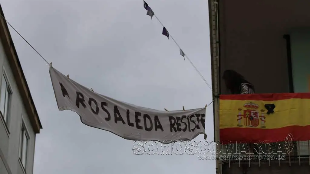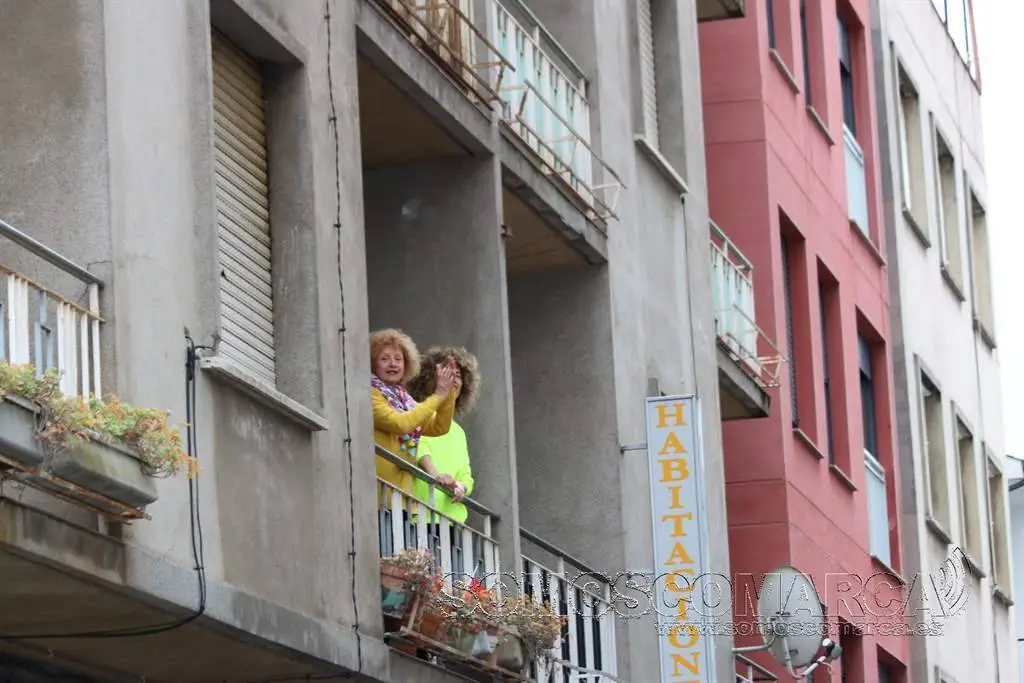 La calle Rosaleda de A Rúa se engalana todos los días a las ocho de la tarde. Banderillas, pañuelos, adornos originales y hasta una pancarta donde se puede leer «A Rosaleda resistiré». Hoy toca bingo de balcón, otros días se disfrazan y otros bailan, el caso es salir un ratito, aunque sea a la ventana. Todo comienza con el sonido de las campanas de la iglesia de Fontei que se dejan oír en el barrio, luego los aplausos: Moncho, Ana, Nati, Celia, Laura, Geles, Virucha, y así hasta casi una treintena de vecinos preparados para bailar y cantar a ritmo de «Resistiré» que hace sonar Nati en su balcón.