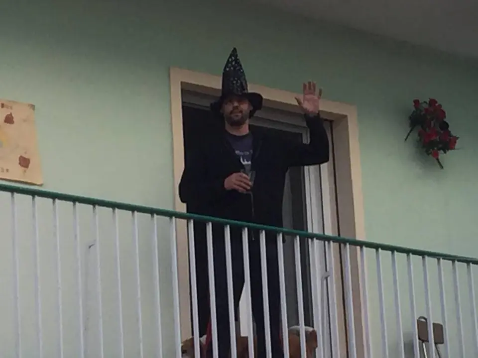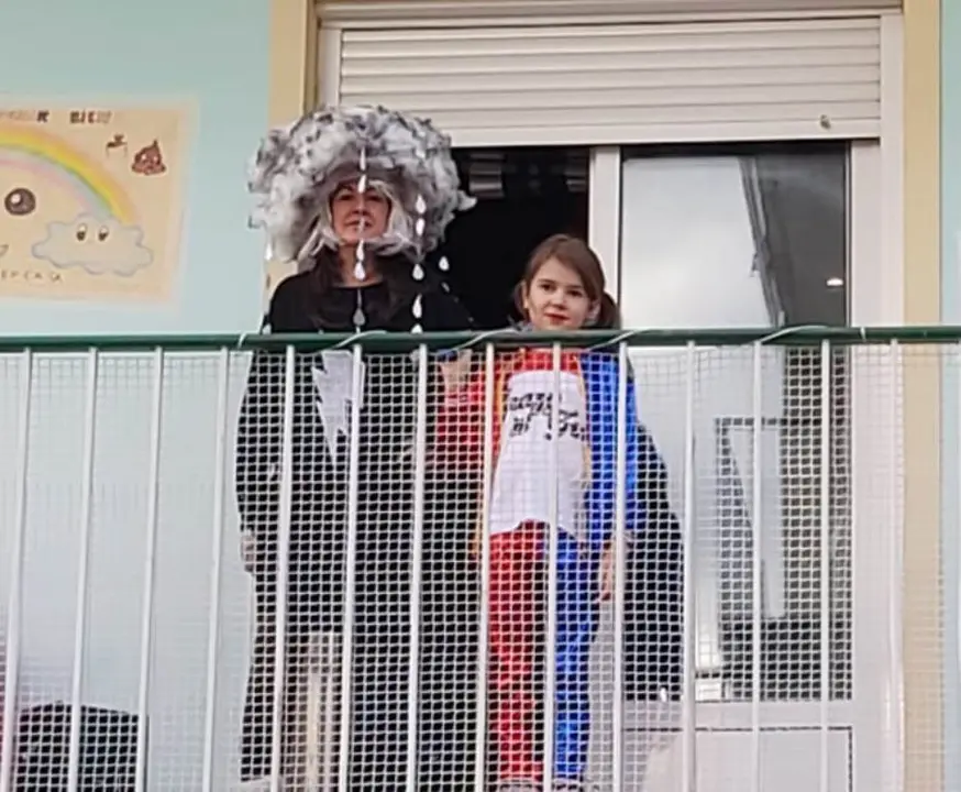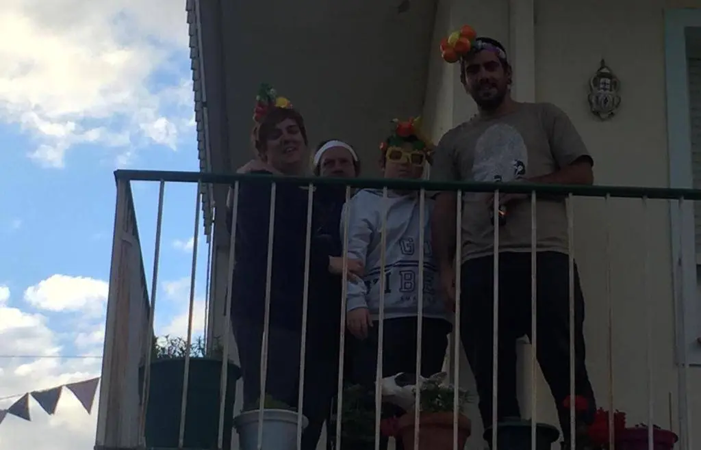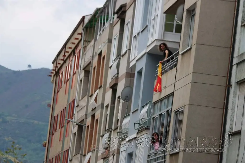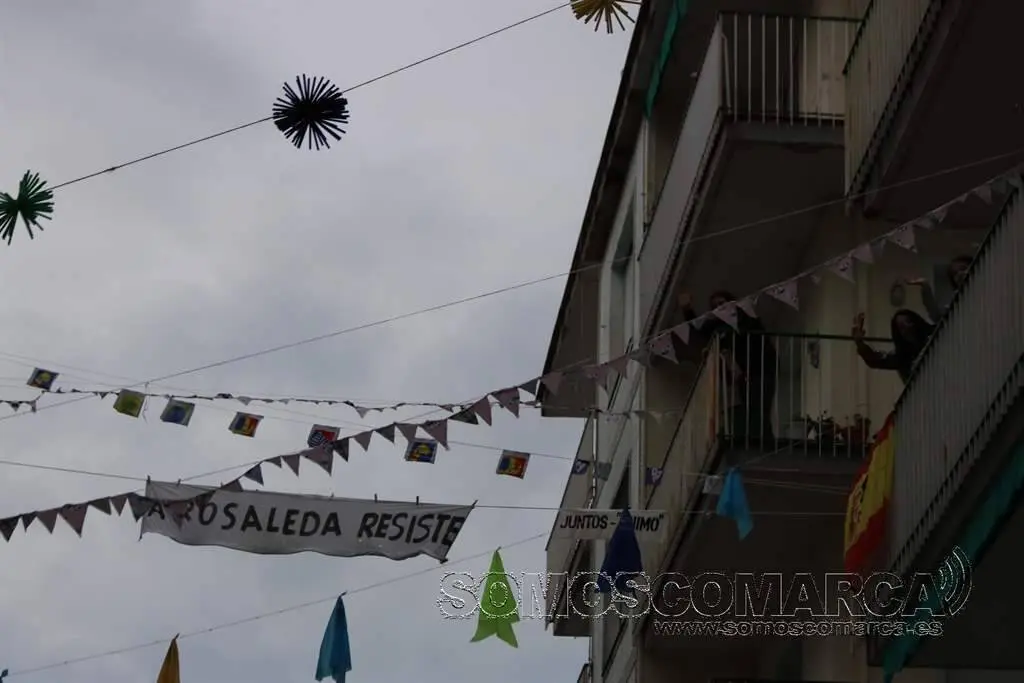 La calle Rosaleda de A Rúa se engalana todos los días a las ocho de la tarde. Banderillas, pañuelos, adornos originales y hasta una pancarta donde se puede leer «A Rosaleda resistiré». Hoy toca bingo de balcón, otros días se disfrazan y otros bailan, el caso es salir un ratito, aunque sea a la ventana. Todo comienza con el sonido de las campanas de la iglesia de Fontei que se dejan oír en el barrio, luego los aplausos: Moncho, Ana, Nati, Celia, Laura, Geles, Virucha, y así hasta casi una treintena de vecinos preparados para bailar y cantar a ritmo de «Resistiré» que hace sonar Nati en su balcón.