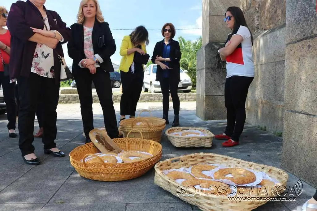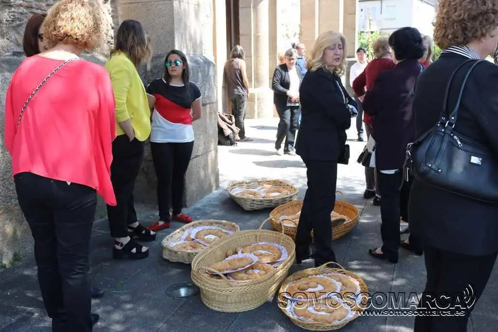 Salió el Santo, patrono de este barrio de A Rúa que a su vez lo es de los objetos perdidos y de las mozas casamenteras,  Es por ello que las mozas —y no tan mozas, ya que hoy, por ser día laborable muchas de ellas se encuentran en sus puestos de trabajo o cumpliendo sus obligaciones con los estudios— abren la procesión portando en sus cestas las roscas que una vez bendecidas en la misa se venderán en la plaza. Las mozas abren la procesión que se celebra antes de la misa al santo entre el sonido de los fuegos de artificio, la charanga y los cánticos de los fieles.