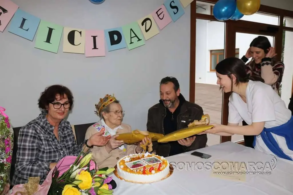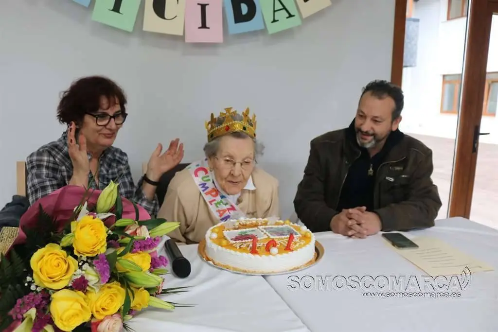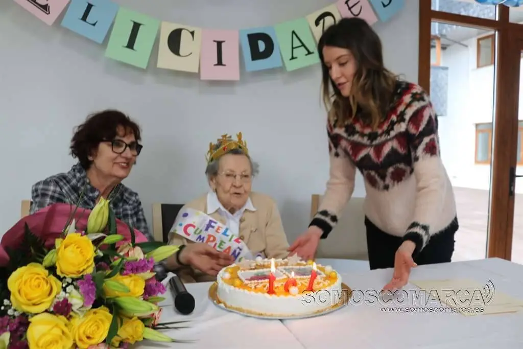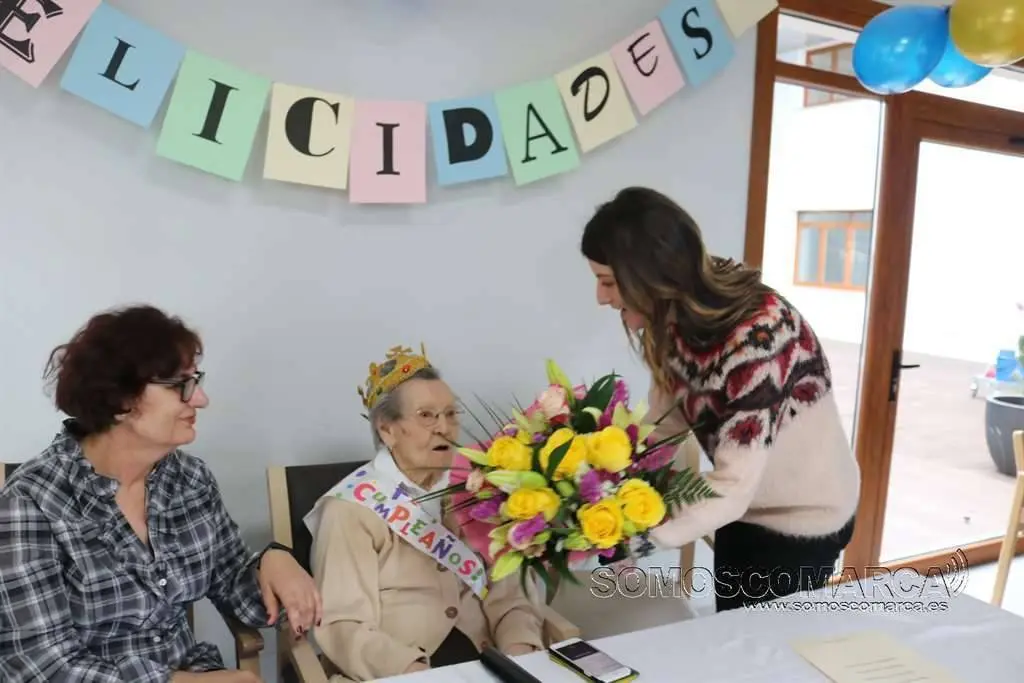 101 años no se cumplen todos los días. Manuela Macía Sierra ha celebrado su cumpleaños este lunes, 13 de enero, rodeada de sus seres queridos. Una fiesta organizada por la Residencia Valdegodos —donde reside— en la que no faltaron las flores, la tarta, los regalos, la música y sobre todo, el cariño.