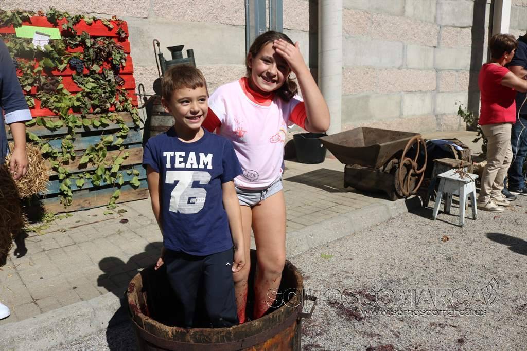 Niños y niñas pisaron las uvas depositadas en un recipiente, hasta tiznar de granate intenso sus pies, para rememorar los viejos tiempos de la viticultura. Y se realizó una muestra del atado con rafia y a la antigua usanza de los injertos, sin el uso de parafina.