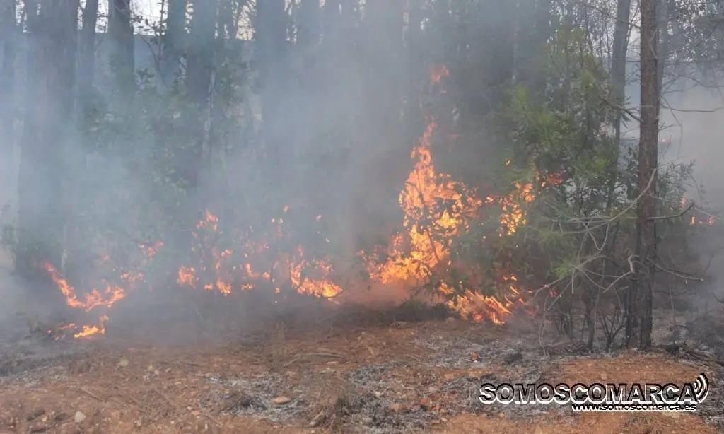 El humo del incendio se aprecia desde diversos puntos de la comarca llegando a ser denso en la N-120 a la altura del cruce entre la propia N-120 con la carretera que lleva a Valdegodos.
