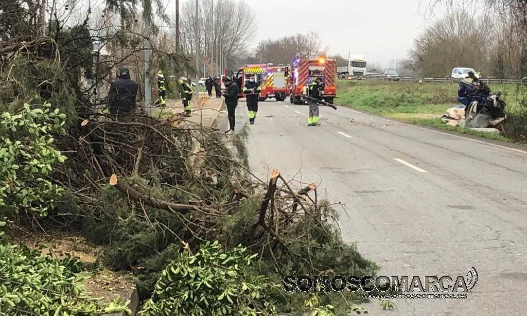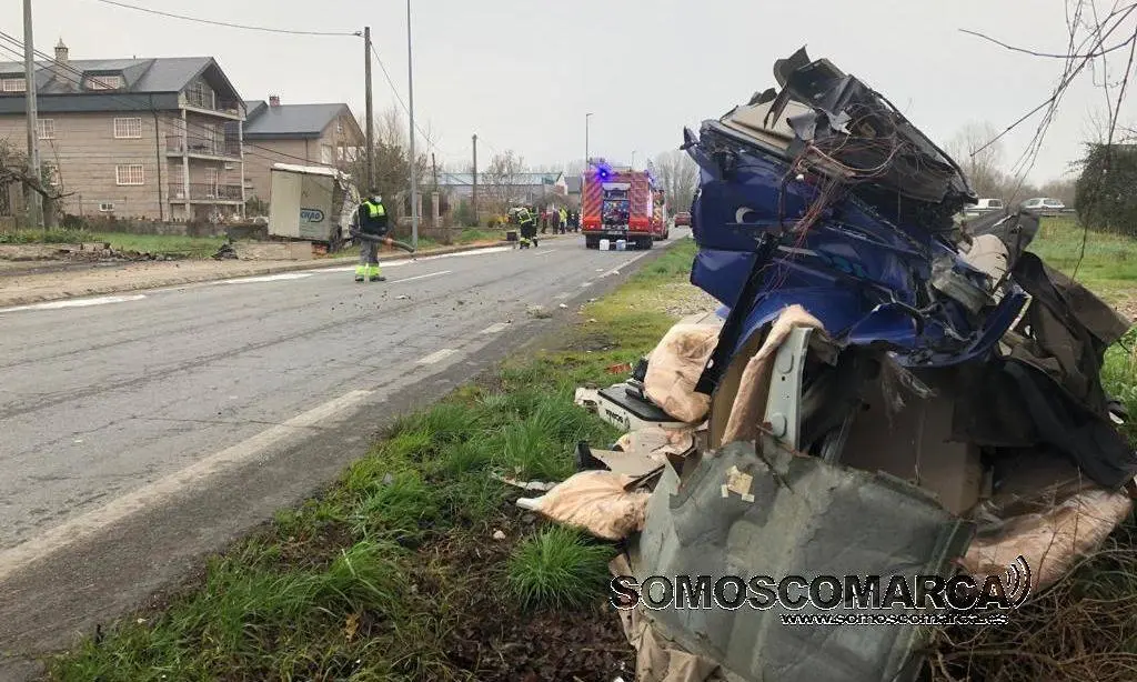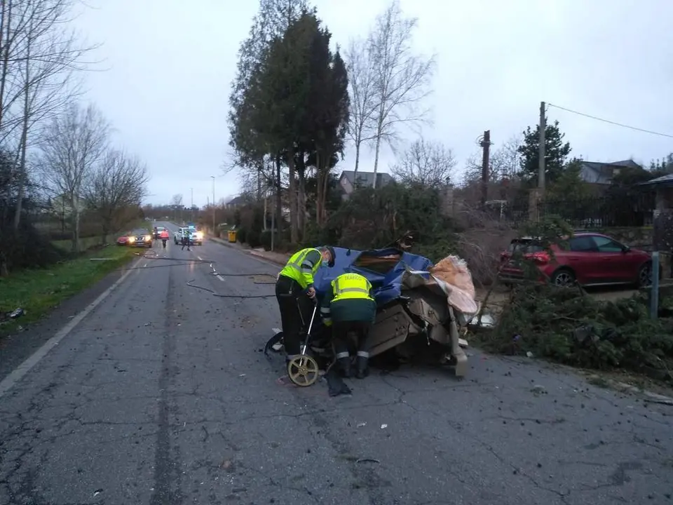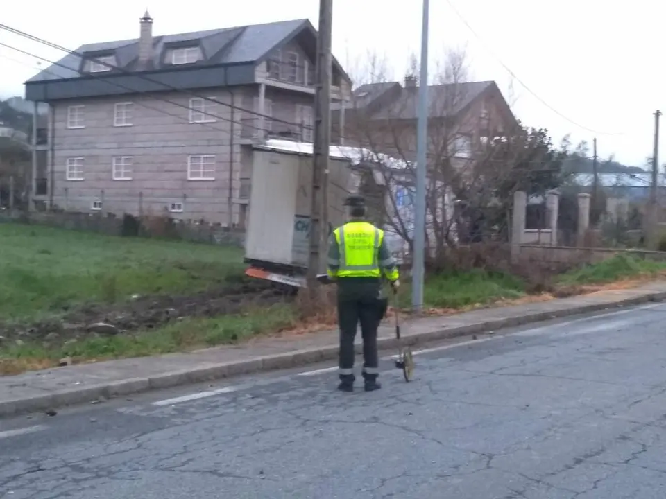 Por circunstancias que aún están pendientes de determinar, un cable de teléfonos, se había descolgado y seccionó una parte de la cabeza tractora del vehículo articulado «tráiler», lo que provocó la pérdida del control por parte del conductor, que terminó saliéndose de la vía por el margen izquierdo y chocando posteriormente contra el cierre de una finca.