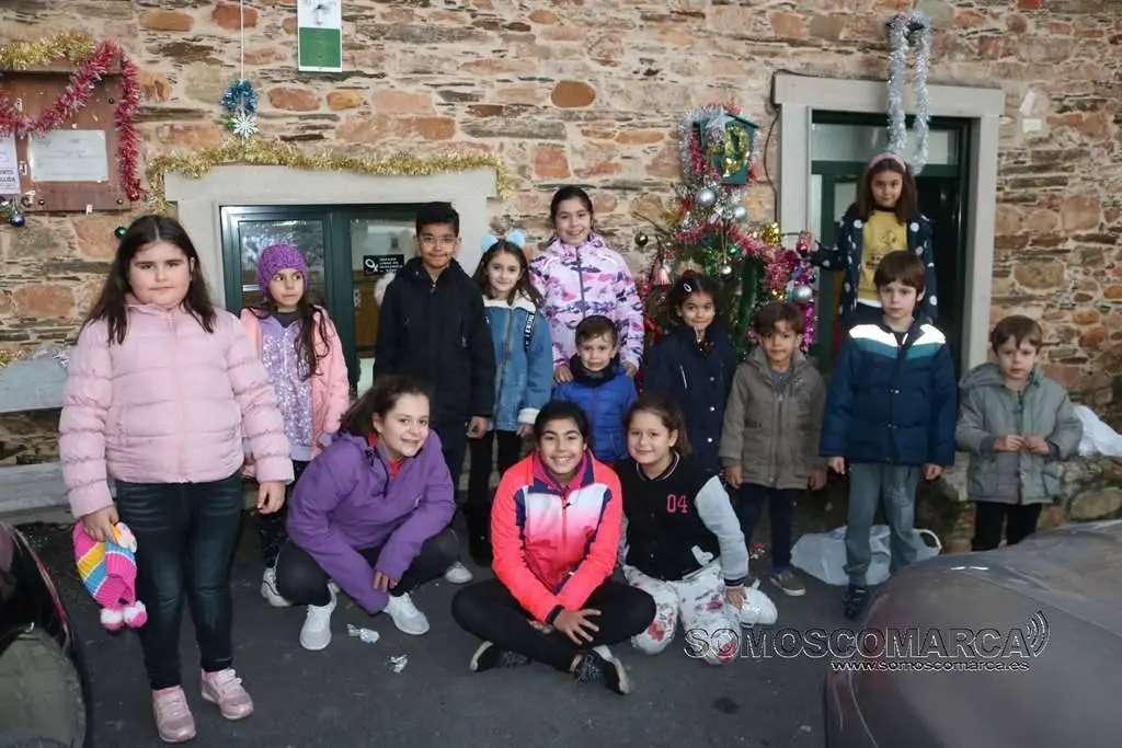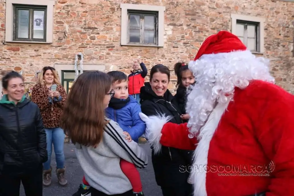 Os nenos e nenas que se atopaban poñendo os adornos na arbore de Nadal da Casa do Pobo en Córgomo (Vilamartín de Valdeorras) recibiron a visita de Papá Noel. Todo era un run-run entre a máis dunha ducia de nenos que, as seis da tarde, se atopaban na praza da Casa do Pobo de Córgomo colocando os adornos navideños. De súpeto o home bonachón de barba branca e gafas, apareceu no fondo da praza nun automóvil de época descapotado e máis vermello ca súa chaqueta. Gritos e aplausos e o espumillón e as bolas de cores brilantes quedaron no chan para ver como baixaba do bonito coche.