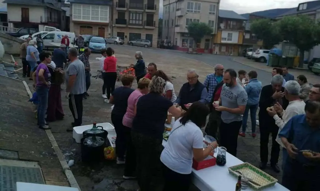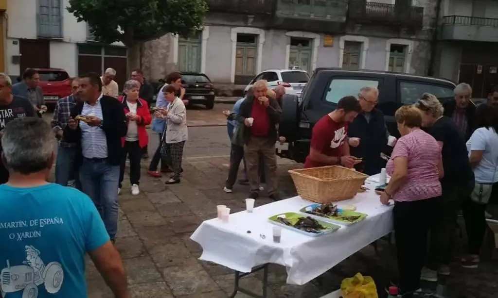 As nove da noite unha gran fogueira ardía na praza de José Luis Núñez para logo coas brasas facer a saborosa sardiñada. Polo prezo de 2 €, os asistentes comeron sardiñas a esgalla, untadas en pan e regadas con viño de Valdeorras.