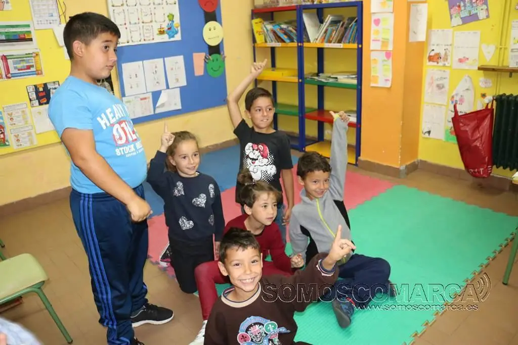 Chegamos ás 8:50 para saber o que acontecía na fila e alí xa fomos coñecendo ós sete nenos e nenas que ese día asistiron ás clases. José Antonio, Uxía, Layane, Emilio, Ismael, Mario e Diego fixeron a asemblea cuxo encargado foi José Antonio —un neno de Sabuguido que acaba de chegar de Estepona, Andalucía— a quen axudou Mario. Na asemblea pasan lista, din os días da semana, miran a quen lle toca facer as tarefas ou o que teñen de comida, tamén o horario das materias. Para rematar contan as historias máis salientables do día anterior.