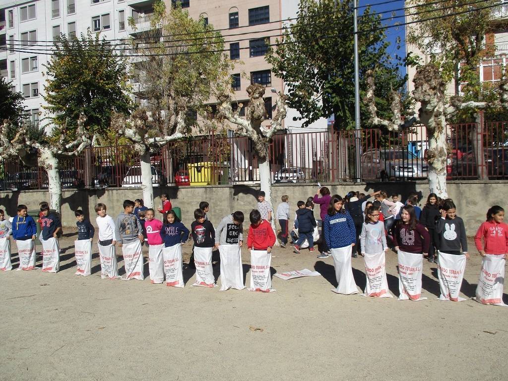 Tal y como destacan desde la dirección del centro han celebrado juegos populares y deportivos relacionados que el magosto y la castaña al largo de la mañana. Entre otros carreras de sacos, baile de la castaña por parejas, el paño, cuchara y castaña, carreras de obstáculos y mini-carrilanas...