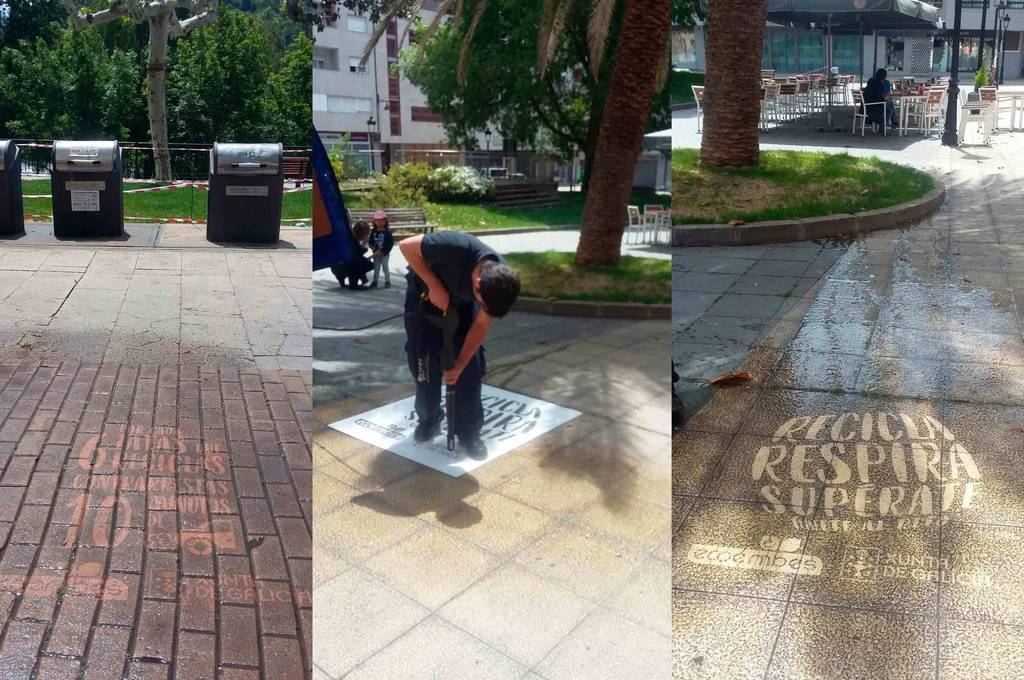 Ayer comenzaba finalmente la campaña «Recicla, respira e supérate. Únete ao reto» en O Barco con la actividad Graffitis inversos, que se dejaron ver en calles y plazas del casco urbano de la villa, en un intento por llamar la atención del ciudadano. El concello barquense es uno de los 15 elegidos por la Consellería de Medio Ambiente y Ecoembes para convertirse en el que más recicla, con el objetivo de superarse a sí mismo en el reciclaje de residuos plásticos.