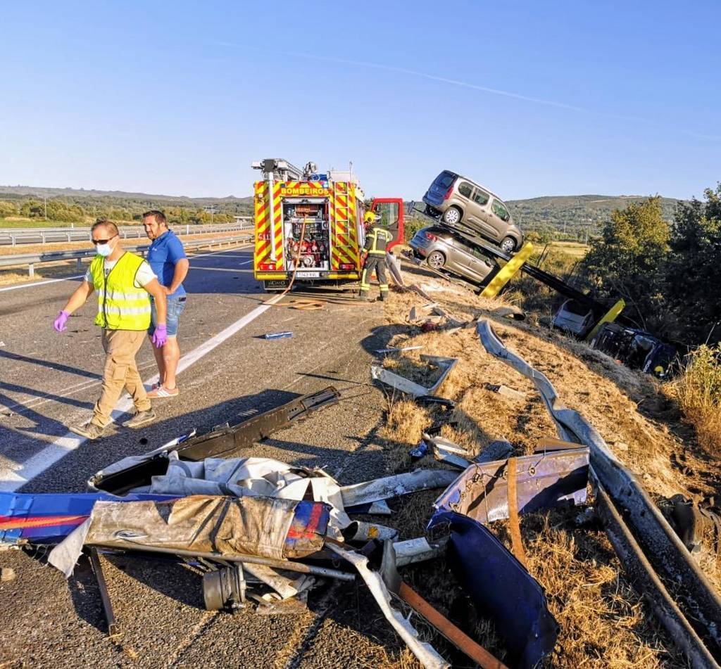 En el accidente han intervenido un equipo de atestados, tres patrullas de motoristas, una patrulla de Seguridad Ciudadana del puesto de Xinzo de Limia, bomberos, dos ambulancias y el retén de mantenimiento de la vía.