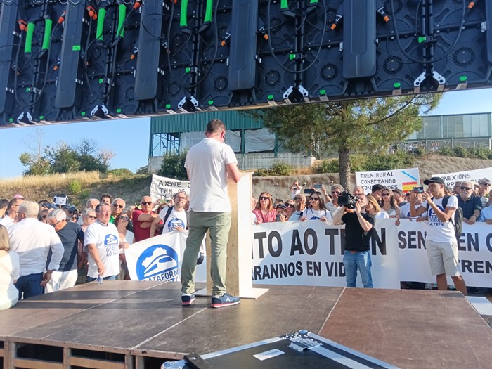 La pregunta del PP se refería a la manifestación del 2 de agosto en A Gudiña, convocada por la plataforma Dereito ao Tren. Miles de personas procedentes de las comarcas de Monterrei, Viana, Valdeorras, Trives, Conso-Frieiras, A Limia, Sanabria y del norte de Portugal recorrieron las calles hasta la estación de alta velocidad Porta de Galicia para exigir la recuperación de las paradas eliminadas.
