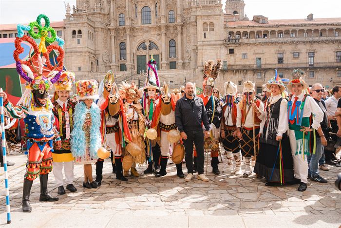 La cita, promovida por la Xunta de Galicia, reunió a más de 400 participantes de 17 carnavales diferentes, que recorrieron desde la plaza del Obradoiro algunas de las principales calles del casco histórico compostelano. Entre ellos destacaron el Entroido de Viana do Bolo, recientemente reconocido como Fiesta de Interés Turístico Nacional (julio de 2025), el atronador Folión de Buxán, con su música de bombos y azadas que retumba como un latido ancestral, y el inconfundible Touro e Xigante de Celavente, que con su fuerza simbólica mantiene viva la tradición de O Bolo.