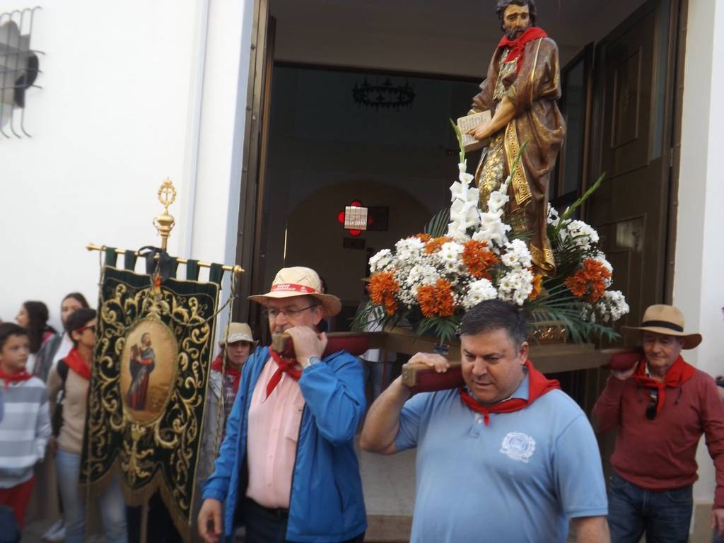Los romeros comenzaron la jornada temprano, acompañando al santo por los caminos hasta la ermita. Parte del camino fueron los ediles rueses los que portaron al santo. Alli se congregó una multitud para ver desfilar a gran parte del medio centenar de carrozas engalanadas de vivos colores. Ellos pusieron los cánticos y el jolgorio a un camino de San Marcos, que logra congregar al mayor número de romeros a lo largo del día.