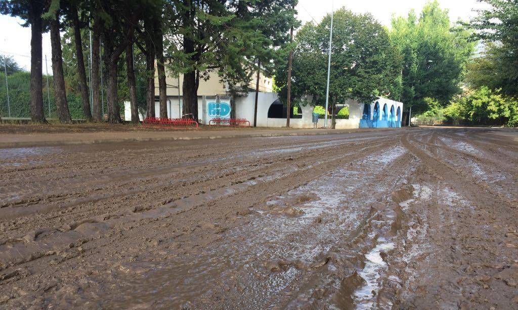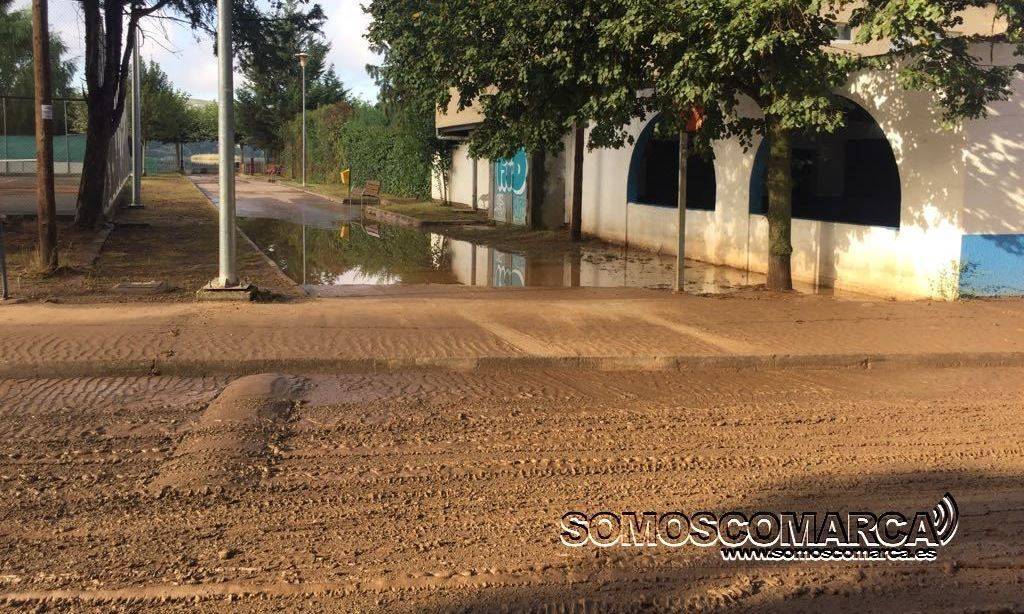 Tamén fronte as piscinas a balsa de auga superou os 15 centímetros pasando por riba dos bordos das beirarrúas.