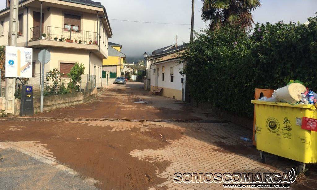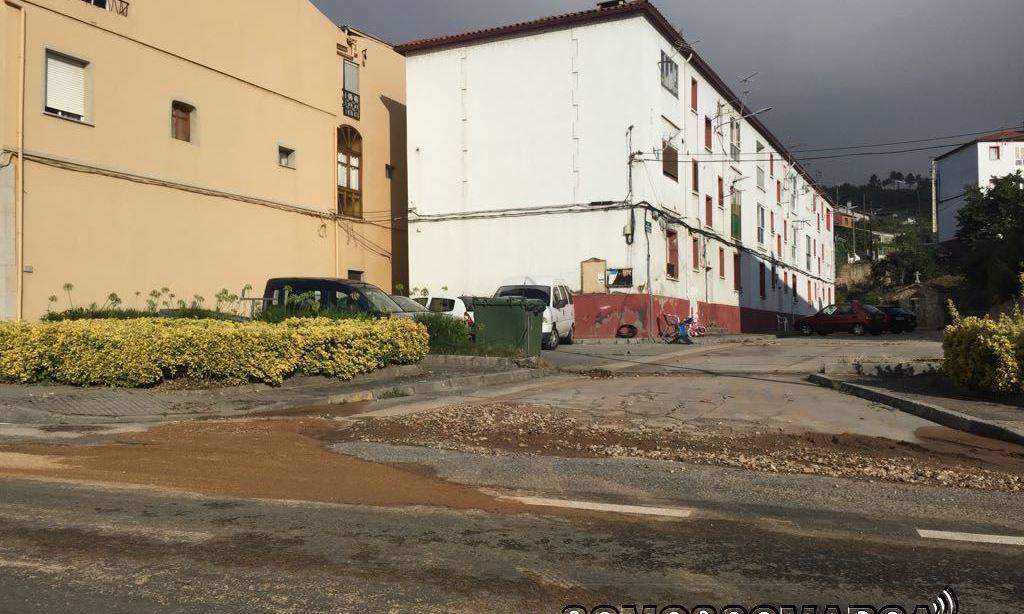Outra das zoas prexudicadas foi o barrio de Fátima —Casas Baratas—, onde a auga arroiou deixando a rúa Progreso —OU-533— chea de pedras e lama.