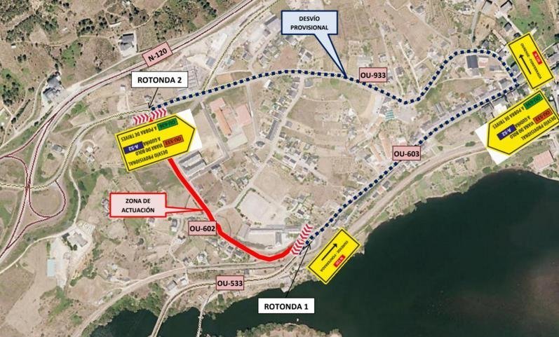Dicha carretera de 0,5 kilómetros de longitud recorre A Rúa y conecta la OU-533 con Fontei. Con vistas a minimizar las afecciones al tráfico, está previsto un recorrido alternativo por las carreteras OU-603, en la que la semana pasada realizaban actuaciones en el firme, y la carretera OU-933.