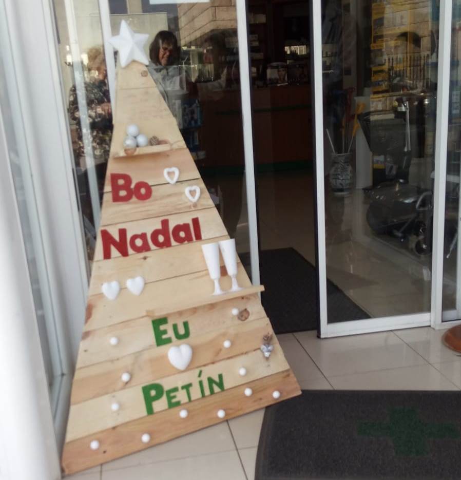 Se trata de abetos hechos en madera con motivos propios de la Navidad, estrellas, piñas y dos copas que invitan al brindis por unas felices fiestas. Están colocados a la puerta de los establecimientos comerciales participantes en la iniciativa con el fin de invitar a entrar en los locales comerciales.