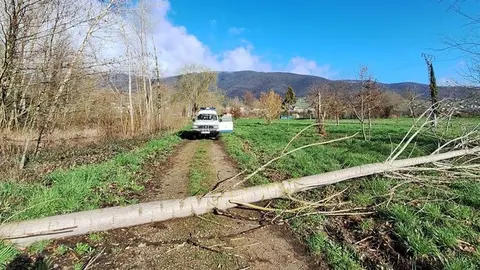 Superado el episodio más crítico del agua, el Concello afronta ahora las consecuencias de las últimas borrascas. En zonas como A Choupeira y el entorno del río se registraron árboles derribados por la combinación de viento y crecida.